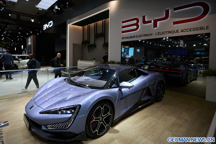 Das Foto zeigt einen BYD Yangwang U9 auf der Brussels Motor Show 2025 in der belgischen Hauptstadt Brüssel, 10. Januar 2025. (Xinhua/Meng Dingbo)