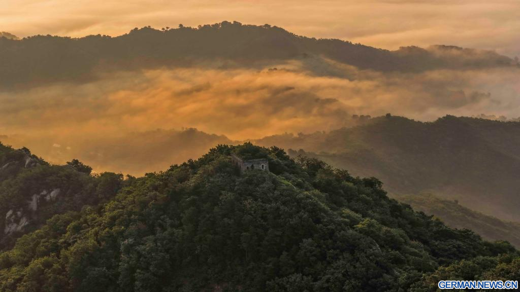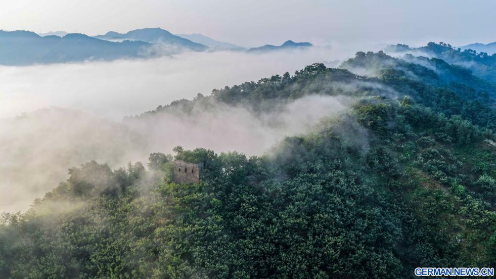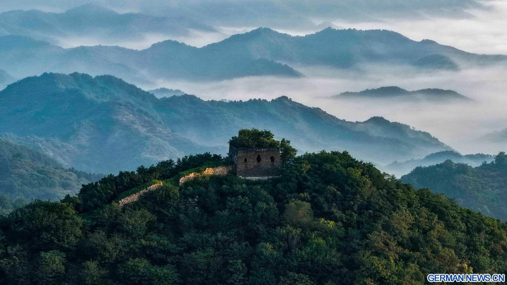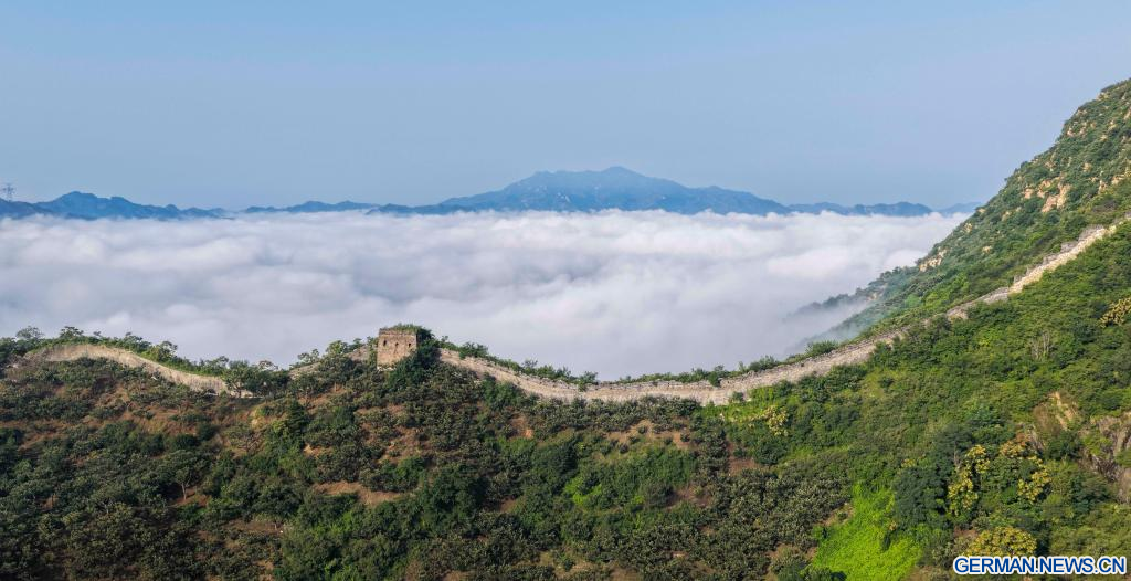 ZUNHUA, 2. August 2025 (Xinhuanet) -- Das am 1. August 2025 mittels einer Drohne aufgenommene Luftfoto zeigt einen Blick auf die Große Mauer in der Stadt Zunhua in der nordchinesischen Provinz Hebei. (Foto von Liu Mancang/Xinhua)