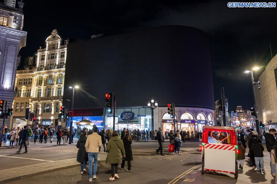 Dieses Foto vom 22. März 2025 zeigt die elektronische Werbetafel am Piccadilly Circus während der Earth Hour 2025 in London in Großbritannien. (Foto von Ray Tang/Xinhua)