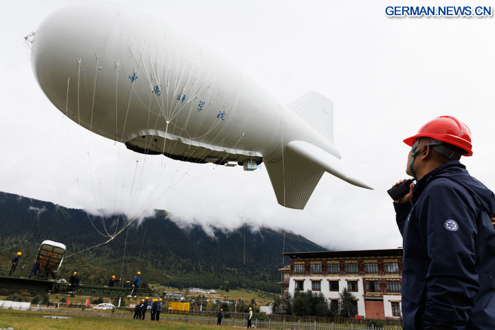 Chinesische Wissenschaftler führten kürzlich ein Experiment zur Beobachtung der Atmosphäre mit dem Fesselballon „Jimu-1” in Lulang in Nyingchi im Autonomen Gebiet Xizang im Südwesten Chinas durch, das neue Erkenntnisse zur Entschlüsselung der Geheimnisse des Ökosystems des Qinghai-Tibet-Plateaus liefern soll.