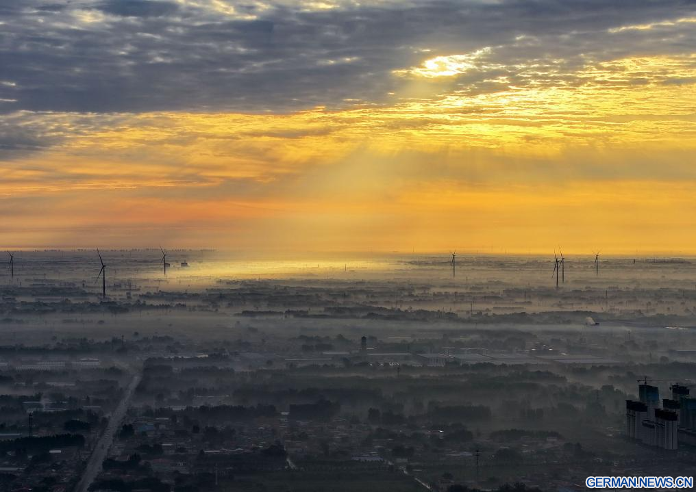 BEIJING, 13. Oktober 2025 (Xinhuanet) -- Die Luftaufnahme einer Drohne vom 13. Oktober 2025 zeigt einen Blick auf den Kreis Guangzong in der Stadt Xingtai in der nordchinesischen Provinz Hebei. (Foto von Wang Lei/Xinhua)