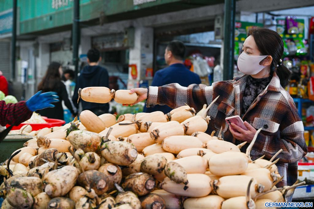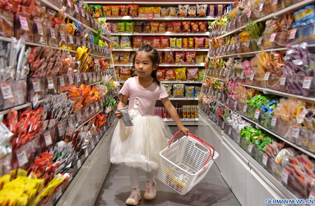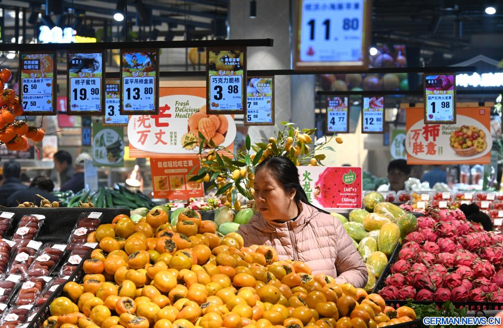 Auch der Verbraucherpreisindex insgesamt zeigte einen positiven Trend: Er verzeichnete einen Anstieg von 0,1 Prozent gegenüber dem Vormonat, nachdem er im August unverändert geblieben war; im Jahresvergleich verringerte sich der Rückgang auf 0,3 Prozent, verglichen mit einem Rückgang von 0,4 Prozent im August. (Foto von Liu Mancang/Xinhua)