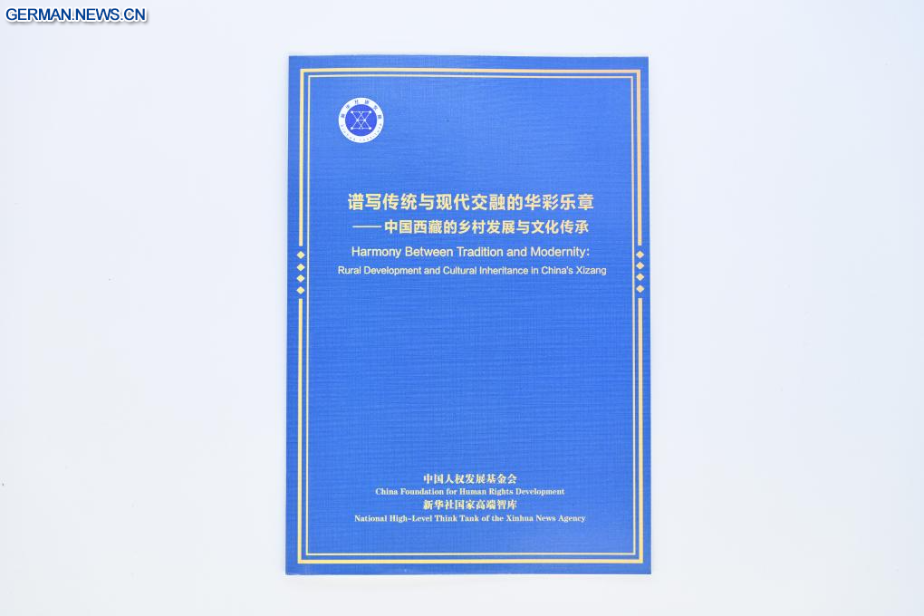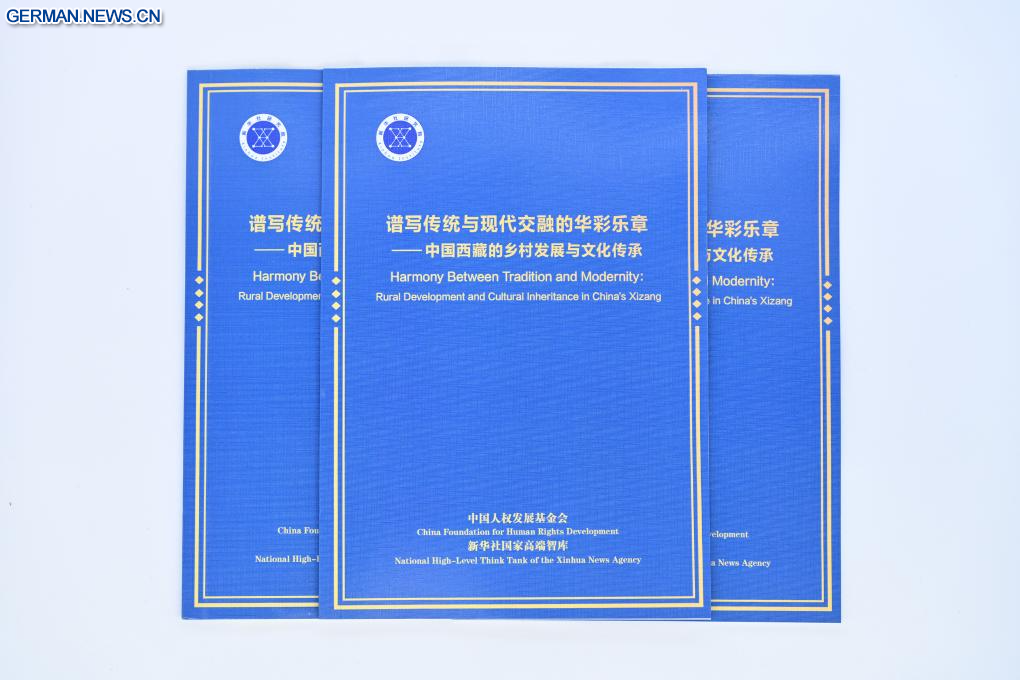 Der Bericht mit dem Titel „Harmonie zwischen Tradition und Moderne: Ländliche Entwicklung und kulturelles Erbe im chinesischen Xizang“ wurde gemeinsam von der China Foundation for Human Rights Development und dem National High-Level Think Tank der Nachrichtenagentur Xinhua auf Chinesisch und Englisch veröffentlicht. (Quelle: Xinhua/Li Xin)