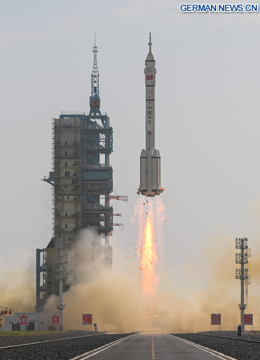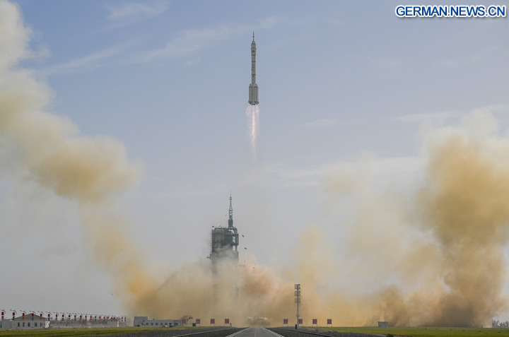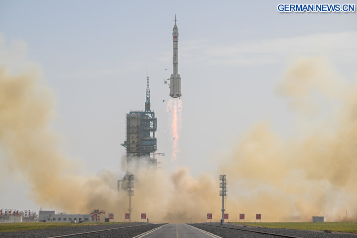 Etwa zehn Minuten nach dem Start trennte sich das Raumschiff von der Rakete und trat in seine vorgesehene Umlaufbahn ein. Die Behörde für bemannte Raumfahrt in China (CMSA) erklärte die Startmission zu einem vollen Erfolg. (Xinhua/Lian Zhen)
