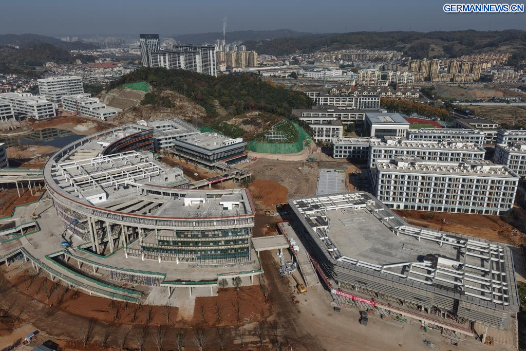 XINCHANG, 27. November 2025 (Xinhuanet) -- Bauarbeiter arbeiten auf der Baustelle des Xinchang College des Zhejiang Industry Polytechnic College im Kreis Xinchang der Stadt Shaoxing in der ostchinesischen Provinz Zhejiang, 26. November 2025. Das Xinchang College des Zhejiang Industry Polytechnic College erstreckt sich über eine Fläche von etwa 600 Mu (ca. 40 Hektar) und ist die erste Hochschule, die derzeit im Kreis Xinchang in Zhejiang gebaut wird. Nach seiner Fertigstellung wird es Platz für rund 6.000 Studenten und Lehrkräfte bieten. (Quelle: Xinhua/Huang Zongzhi)