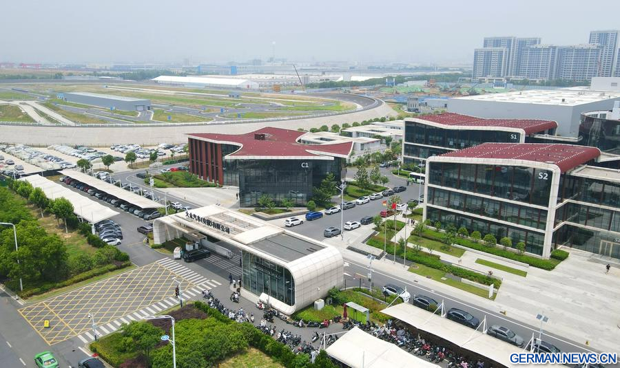 Die Drohnenaufnahme zeigt eine Außenansicht der Volkswagen (Anhui) Automotive Company Limited in Hefei in der Provinz Anhui in Ostchina, 7. Juni 2024. (Xinhua/Guo Chen)