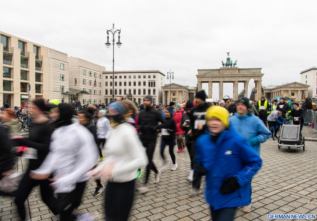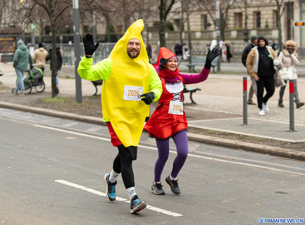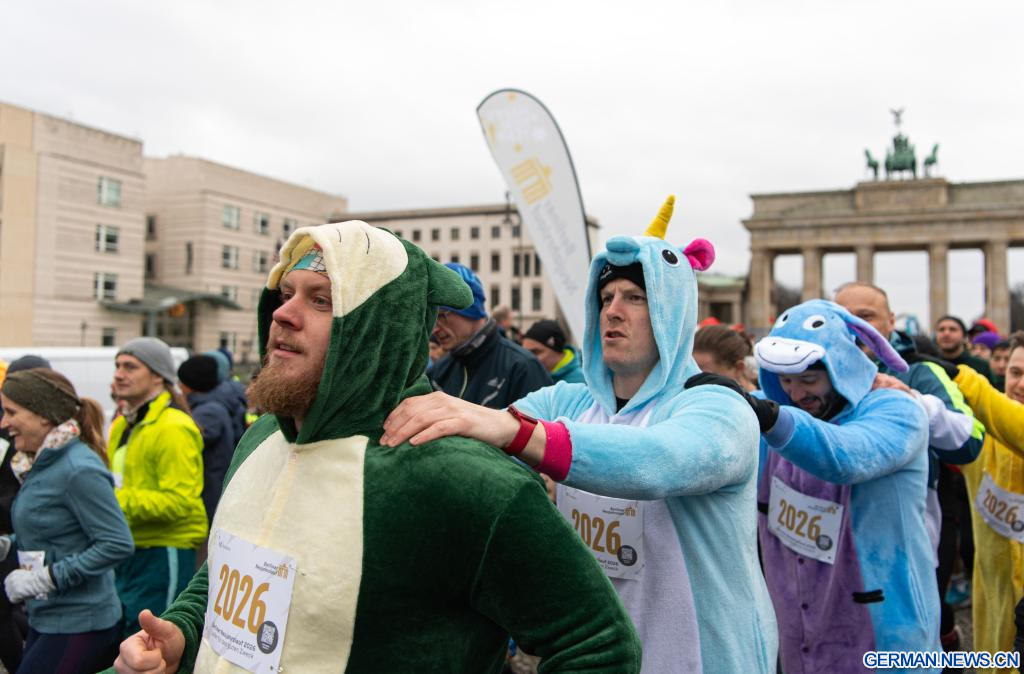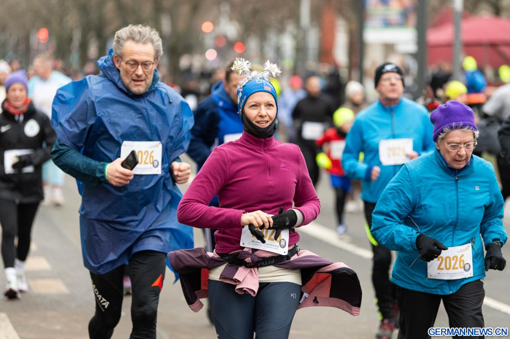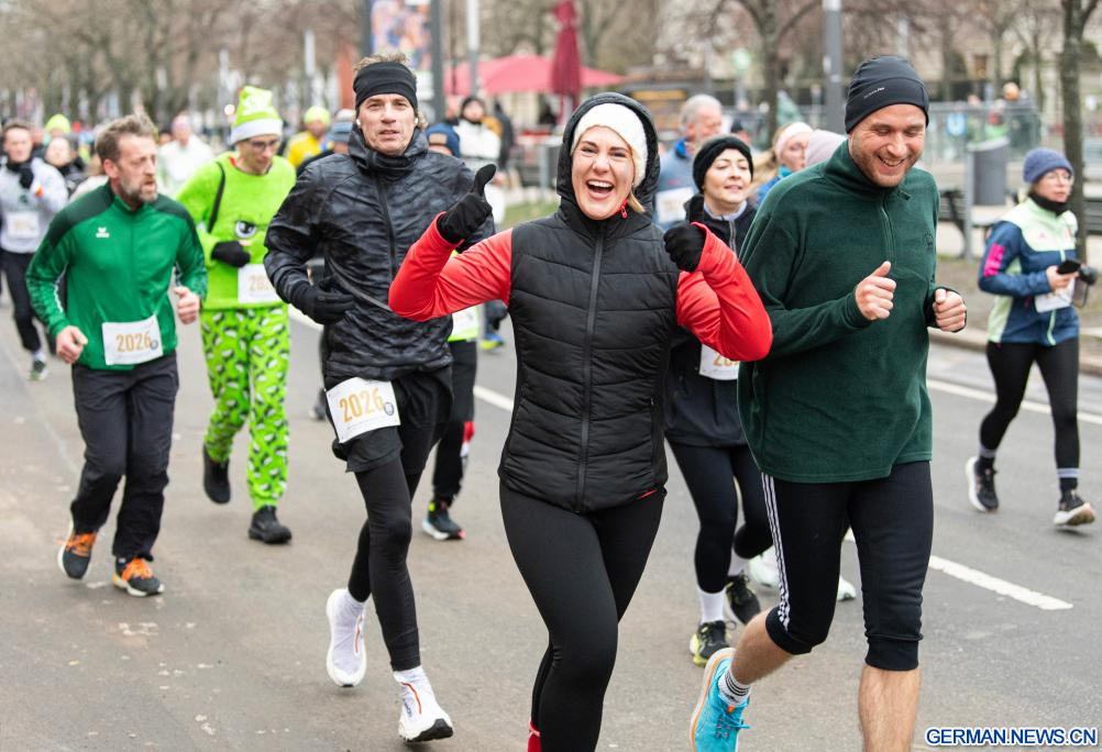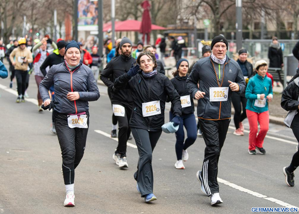 BERLIN, 1. Januar 2026 (Xinhuanet) -- Menschen nehmen am Neujahrslauf in Berlin, Deutschland, teil, 1. Januar 2026. (Quelle: Xinhua/Zhang Haofu)