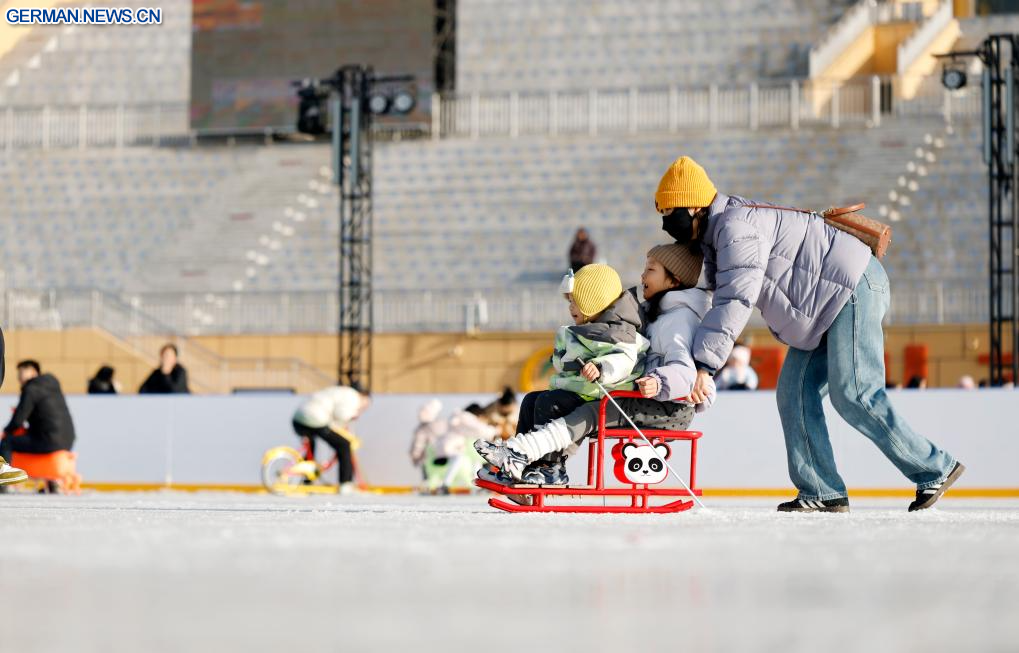 YINCHUAN, 18. Januar 2026 (Xinhuanet) -- Menschen haben Spaß auf einer Eisbahn in einem Park in Yinchuan im nordwestchinesischen Autonomen Gebiet Ningxia der Hui, 17. Januar 2026. (Quelle: Xinhua/Wang Peng)