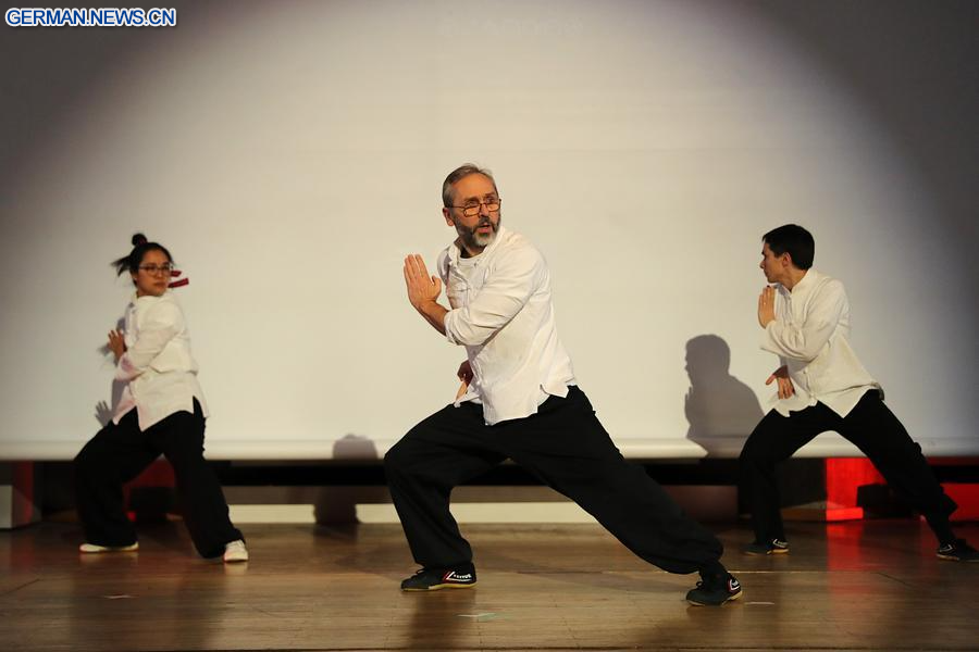 Das Foto zeigt eine Kung-Fu-Vorführung bei der Frühlingsfest-Gala Berlin-Brandenburg 2026 in der Technischen Universität Berlin in Berlin, 1. Februar 2026. (Xinhua/Du Zheyu)