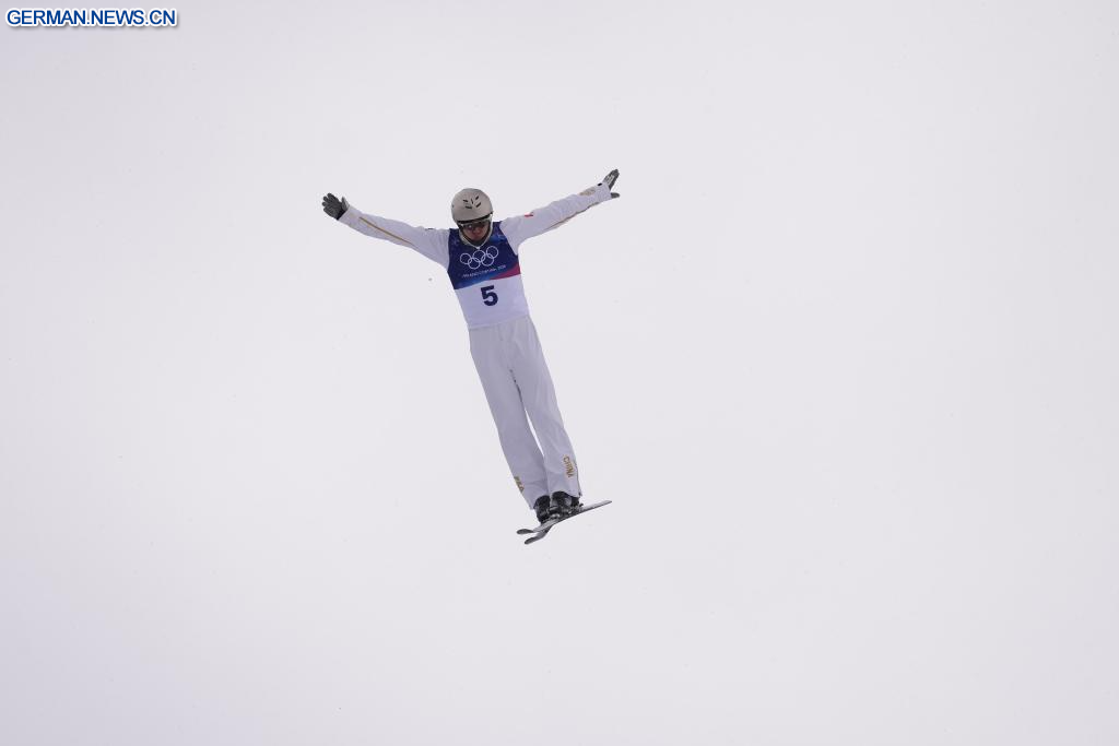LIVIGNO, 20. Februar 2026 (Xinhuanet) -- Wang Xindi aus China wetteifert im Finale 2 des Aerials-Wettbewerbs im Freestyle-Skiing der Männer bei den Olympischen Winterspielen 2026 in Mailand-Cortina in Livigno, Italien, 20. Februar 2026. (Quelle: Xinhua/Hu Chao)