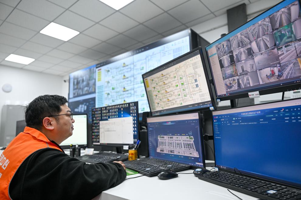 TIANJIN, 26. Februar 2026 (Xinhuanet) -- Ingenieure patrouillieren in der Kühlstation eines intelligenten Rechenzentrums von China Telecom im Beijing-Tianjin Industrial New City Gaocun Data Intelligence Innovation Park im nordchinesischen Tianjin, 26. Februar 2026. Der Beijing-Tianjin Industrial New City Gaocun Data Intelligence Innovation Park ist eine zentrale Plattform für die Förderung der digitalen Wirtschaft im Bezirk Wuqing in Tianjin. Der Park verfügt über sechs hochmoderne Rechenzentren und beherbergt über 300 datengeführte Unternehmen. Er bietet effiziente Echtzeit-Computing-Dienste mit geringer Latenz, um Unternehmen in der Region Beijing-Tianjin-Hebei in Bereichen wie Finanzen, digitale Kreativität, Schienenverkehr und Gesundheitswesen zu unterstützen. Seine Computing-Dienstleistungen nehmen in der Region eine führende Position ein. (Quelle: Xinhua/Sun Fanyue)
