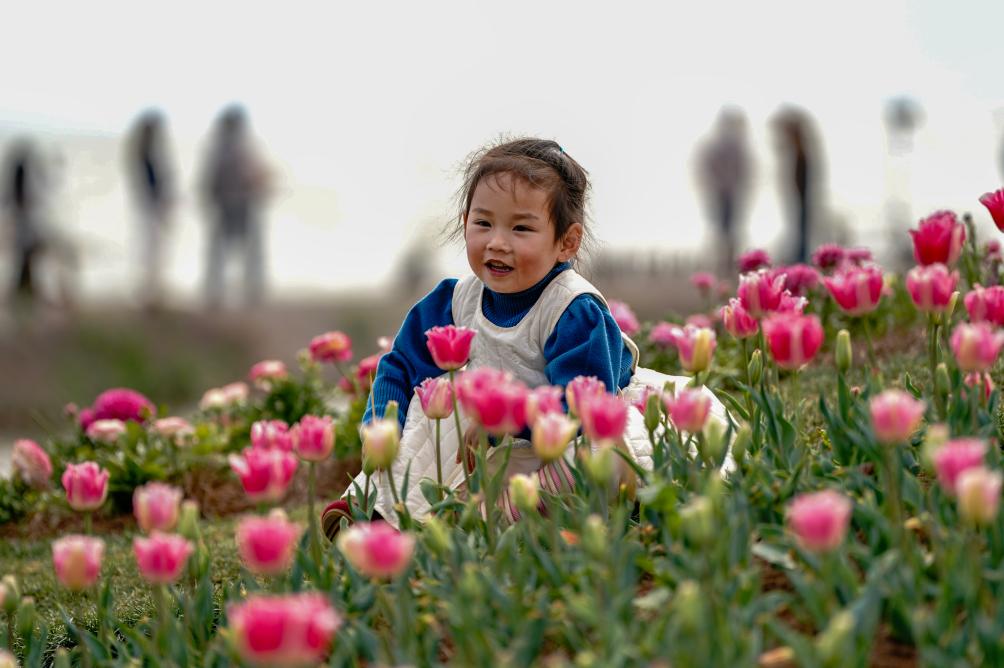 KUNMING, 26. Februar 2026 (Xinhuanet) -- Ein Mädchen posiert neben Tulpen am Dianchi-See in der Stadt Kunming der südwestchinesischen Provinz Yunnan, 26. Februar 2026. (Quelle: Xinhua/Chen Xinbo)