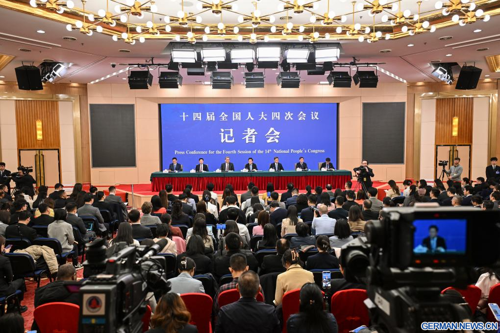 Eine Pressekonferenz zur vierten Tagung des 14. Nationalen Volkskongresses (NVK) zum Thema Wirtschaft findet in Chinas Hauptstadt Beijing statt, 6. März 2026. (Quelle: Xinhua/Li Xin)