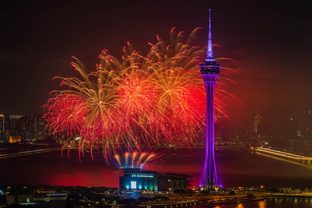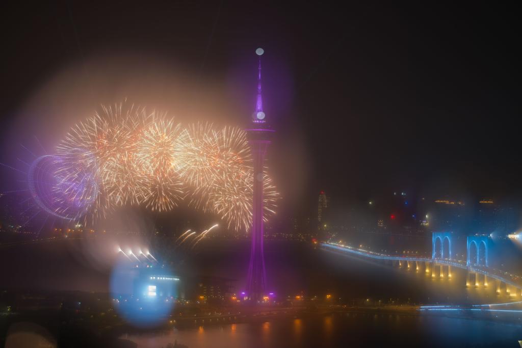 In Bildern: Feuerwerk-Show über Meer in der Nähe des Macao Tower in Macao - Xinhua | German.news.cn