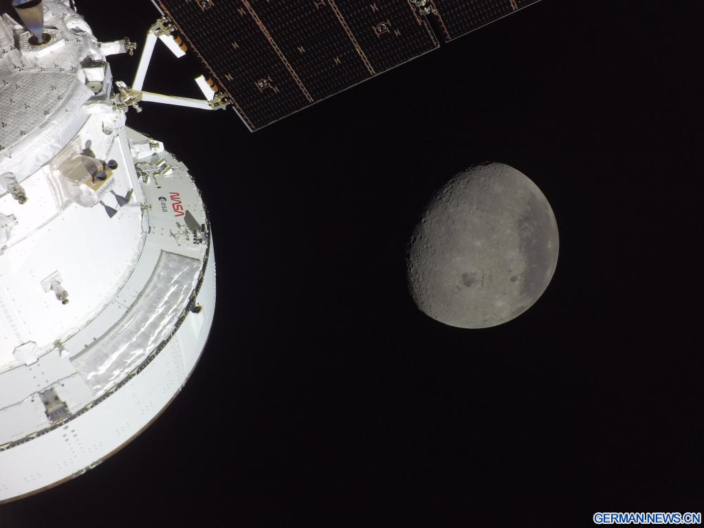 Unterdessen veröffentlichte die NASA die ersten Fotos, die während der Annäherung an die Mondoberfläche am Montag aufgenommen wurden, und gab bekannt, dass die Wasserung für den 10. April im Pazifischen Ozean vor der Küste von San Diego in Kalifornien geplant ist. (Quelle: NASA/Handout via Xinhua)