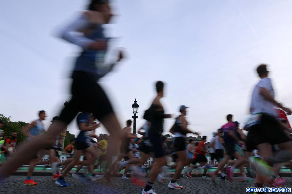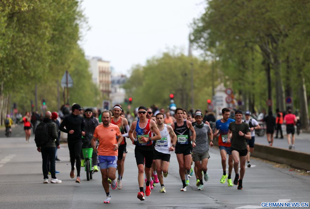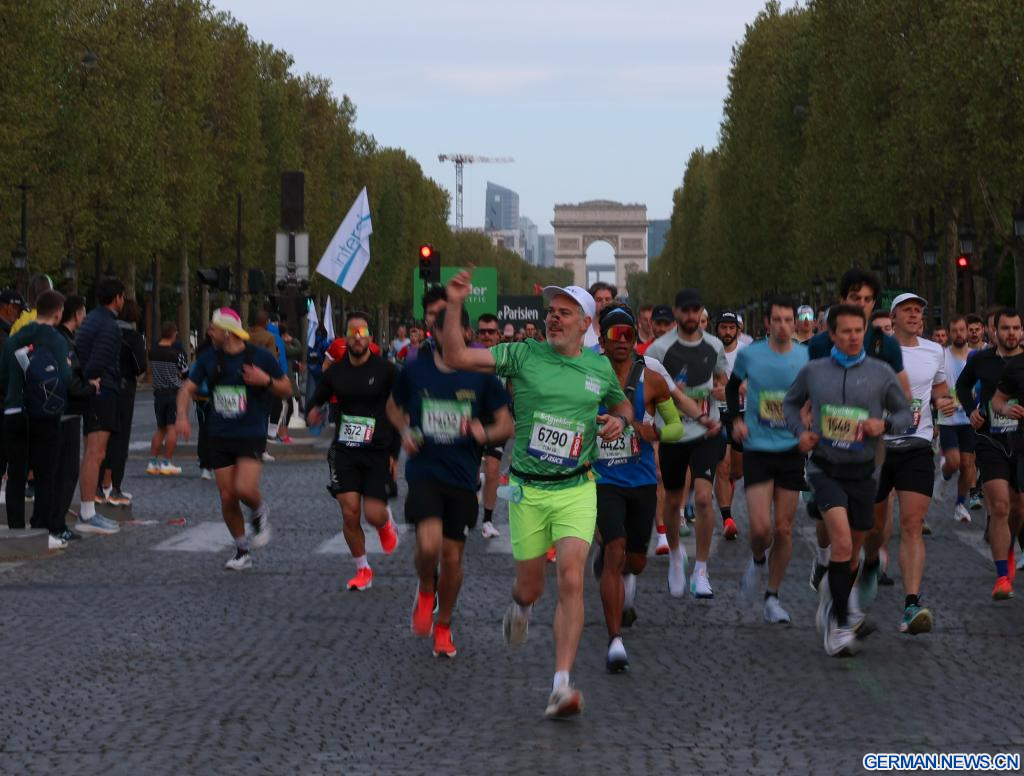 PARIS, 12. April 2026 (Xinhuanet) -- Teilnehmende laufen während des Paris-Marathons 2026 in Paris, Frankreich, 12. April 2026. (Quelle: Xinhua/Wu Huiwo)
