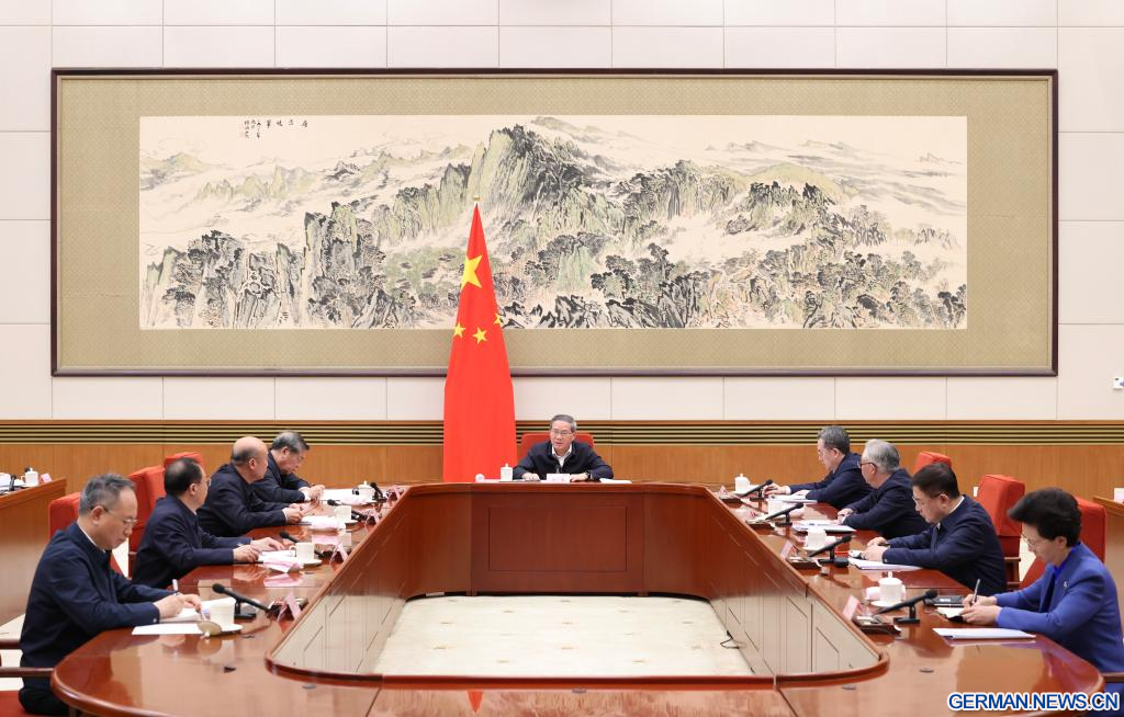BEIJING, 20. April 2026 (Xinhuanet) -- Der chinesische Ministerpräsident Li Qiang leitet eine Gruppenstudiensitzung des Staatsrats zum Thema Energieentwicklung, 20. April 2026. Li forderte am Montag Anstrengungen zur Optimierung von Chinas Energiestruktur und zur Vertiefung der Reformen im Energiesektor, um den ökologischen Wandel und die qualitativ hochwertige Entwicklung des Landes mit einer soliden Energieversorgung zu unterstützen. (Quelle: Xinhua/Huang Jingwen)