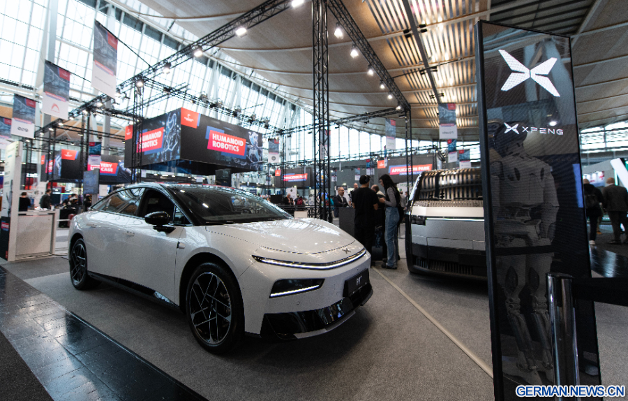 HANNOVER, 21. April 2026 (Xinhua) -- Das Foto zeigt den Ausstellungsbereich von Xpeng auf der Hannover Messe 2026, 20. April 2026.