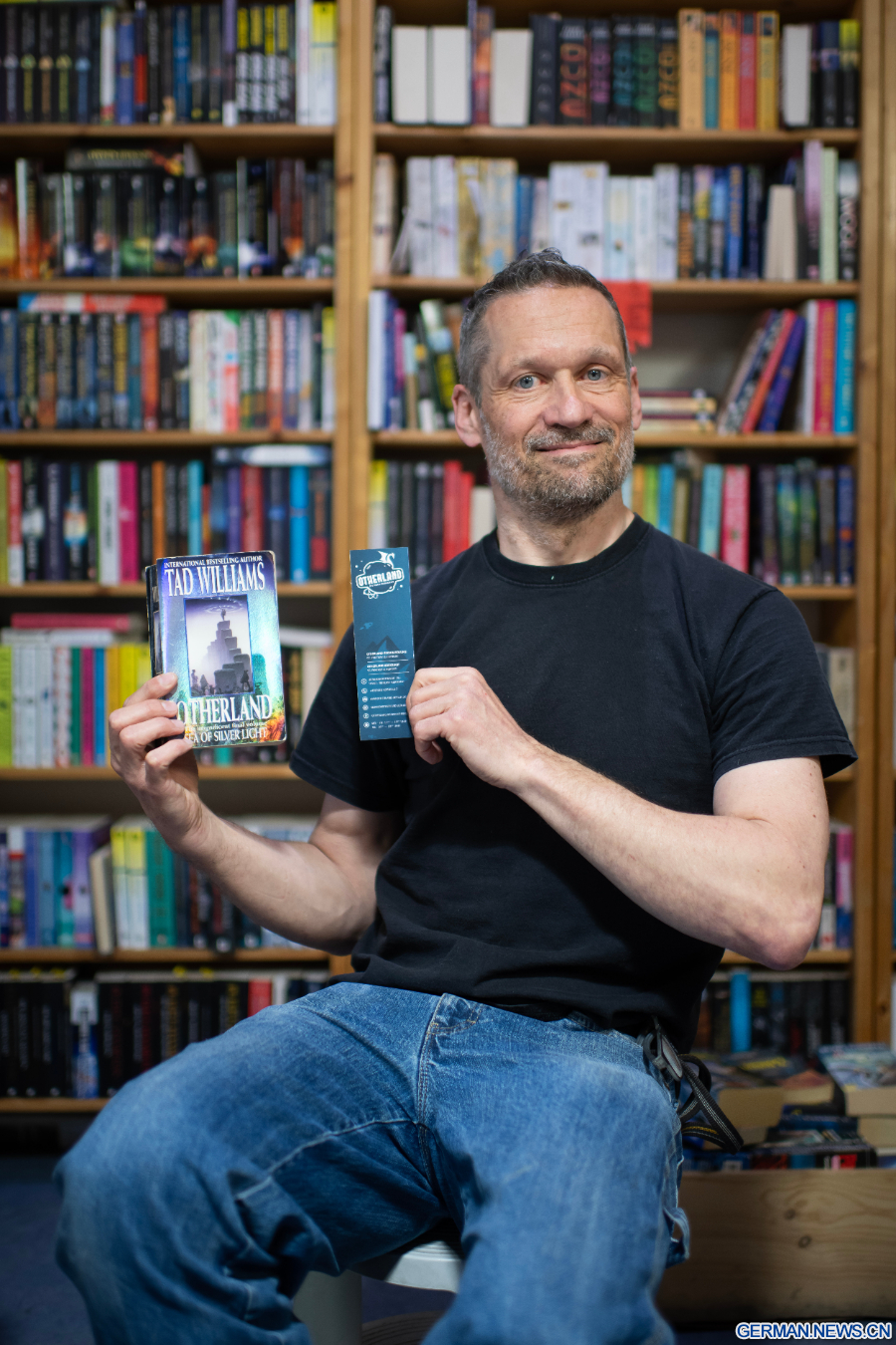 Wolfgang Tress, einer der drei Inhaber von Otherland, posiert für ein Foto in der Science-Fiction-Buchhandlung Otherland in Berlin, 16. April 2026. Während künstliche Intelligenz (KI) und digitale Plattformen die Lesegewohnheiten verändern, passen sich Buchhandlungen in Deutschland an, indem sie sorgfältig zusammengestellte Angebote machen und Gemeinschaften aufbauen, um relevant zu bleiben. (Xinhua/Zhang Haofu)