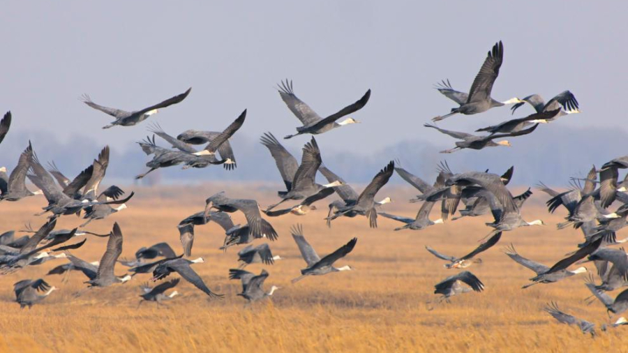 In Bildern: Schwarzhalskraniche überwintern im Nationalpark Caohai in China
