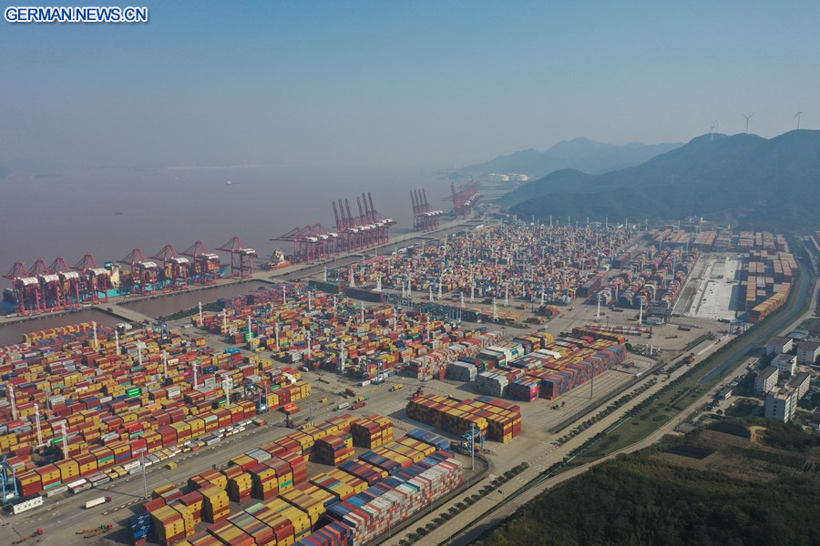 Die Luftaufnahme zeigt den Bereich Chuanshan des Hafens Ningbo-Zhoushan in der Provinz Zhejiang in Ostchina, 13. Dezember 2022. (Xinhua/Huang Zongzhi)