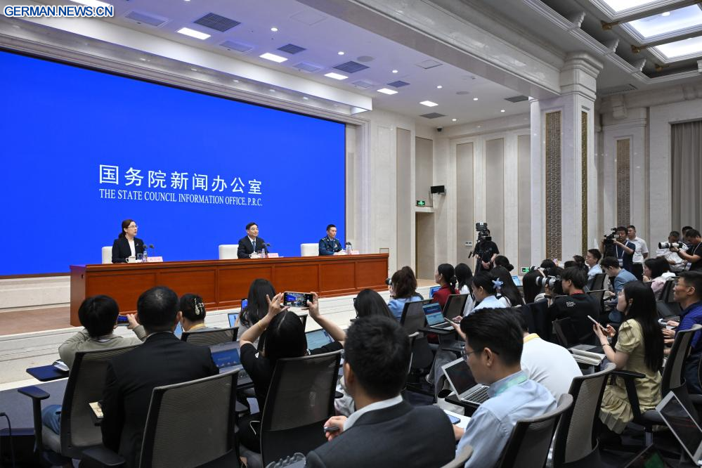 BEIJING, 24. Juni 2025 (Xinhuanet) -- Das Informationsbüro des chinesischen Staatsrats hält eine Pressekonferenz zu den Plänen zur Feier des 80. Jahrestages des Sieges im Widerstandskrieg des chinesischen Volkes gegen die japanische Aggression und im antifaschistischen Weltkrieg in Chinas Hauptstadt Beijing ab, 24. Juni 2025. (Quelle: Xinhua/Jin Liangkuai)