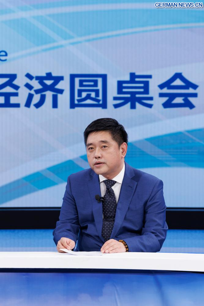 BEIJING, 14. Juli 2025 (Xinhuanet) -- Shen Lei, stellvertretender Direktor des Verwaltungsausschusses des Industrieparks von Suzhou, spricht am Drehort der neuesten Folge von China Economic Roundtable, einer von der Nachrichtenagentur Xinhua veranstalteten All-Media-Talkshow. (Quelle: Xinhua/Jin Liwang)