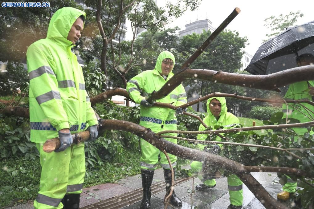 Bei Landfall erreichte die maximale Windgeschwindigkeit in der Nähe seines Zentrums 33 Meter pro Sekunde. Wipha wird voraussichtlich mit einer Geschwindigkeit von 20 bis 25 km/h in west-südwestlicher Richtung weiterziehen. (Quelle: Xinhua/Xiao Ennan)