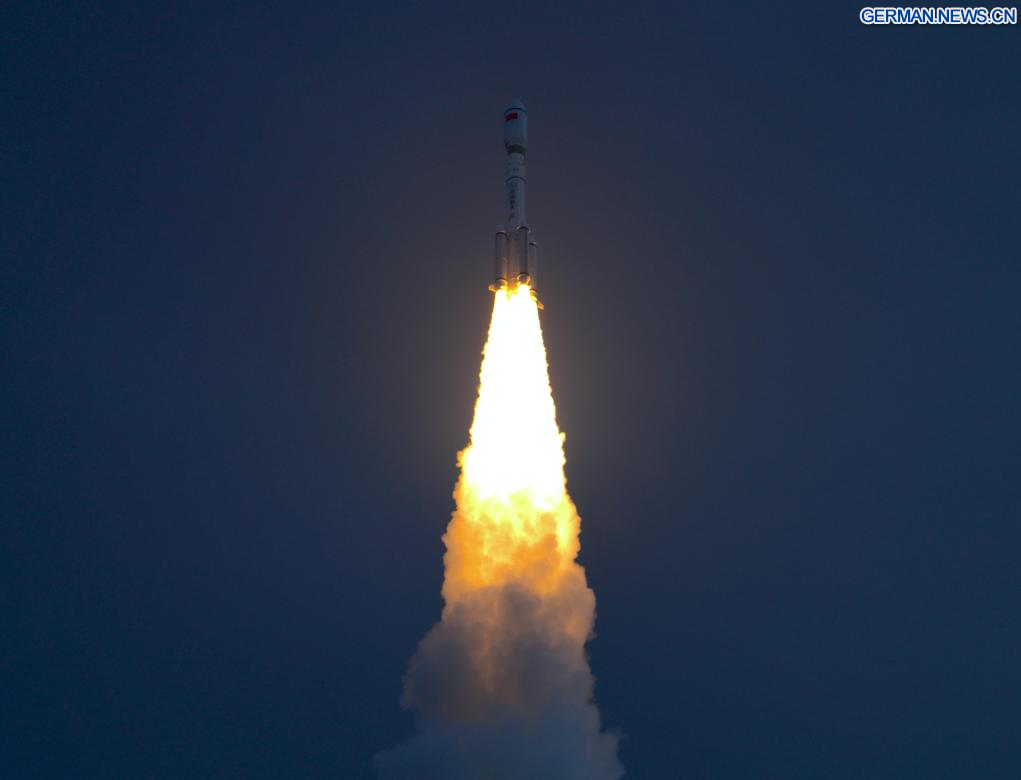 Der Start markierte die 585. Mission der Trägerraketen der „Langer Marsch“-Serie. (Foto von Wang Yapeng/Xinhua)