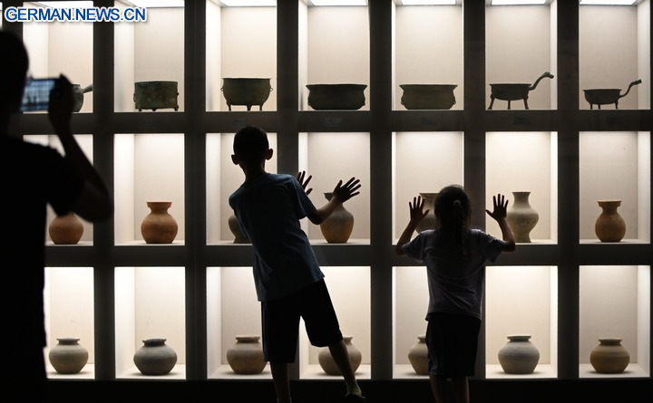 BEIJING, 4. August 2025 (Xinhua) -- Kinder besuchen das Tengzhou Museum in Tengzhou in der Provinz Shandong in Ostchina, 3. August 2025. (Foto von Li Zhijun/Xinhua)