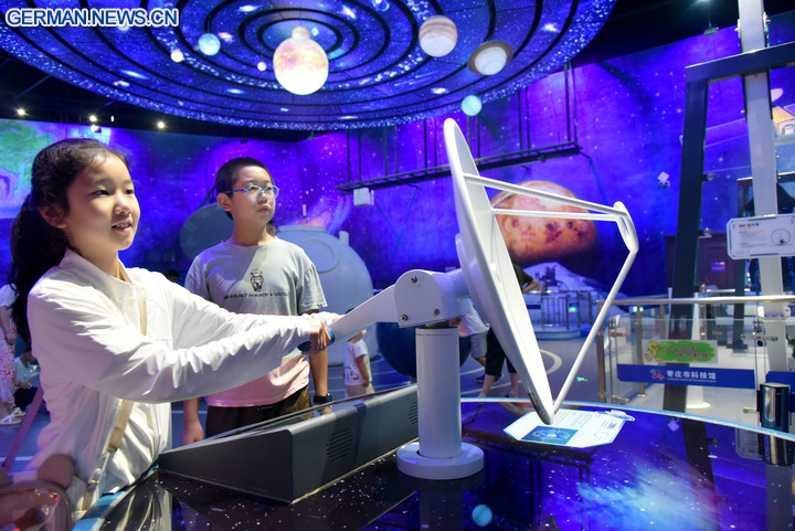 BEIJING, 4. August 2025 (Xinhua) -- Das Foto zeigt Kinder beim Besuch eines Museums für Wissenschaft und Technologie in Zaozhuang in der Provinz Shandong in Ostchina, 2. August 2025. (Foto von Liu Mingxiang/Xinhua)