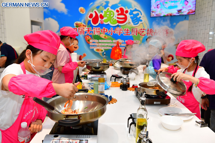 BEIJING, 4. August 2025 (Xinhua) -- Das Foto zeigt Kinder bei einem Kochwettbewerb in Wuxi in der Provinz Jiangsu in Ostchina, 3. August 2025. (Foto von Huan Yueliang/Xinhua)