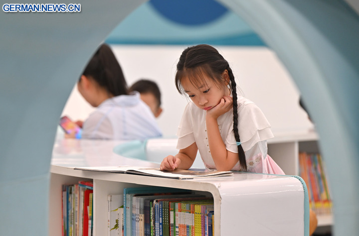 BEIJING, 4. August 2025 (Xinhua) -- Ein Mädchen liest in einer Bibliothek in Haikou in der Provinz Hainan in Südchina, 3. August 2025. (Xinhua/Guo Cheng)
