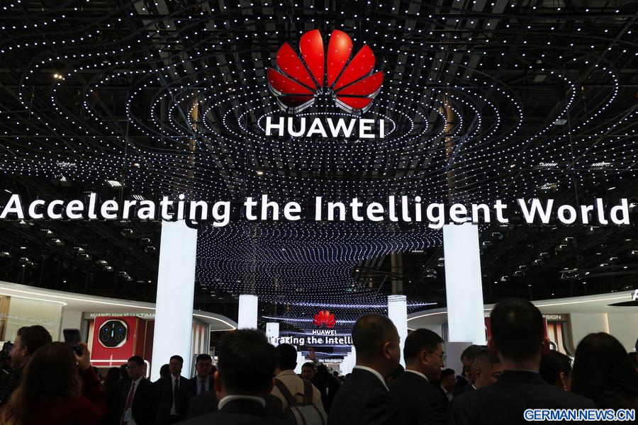 Das Foto zeigt Besucher am Stand von Huawei auf dem Mobile World Congress 2025 in Barcelona in Spanien, 3. März 2025. (Xinhua/Zhao Dingzhe)