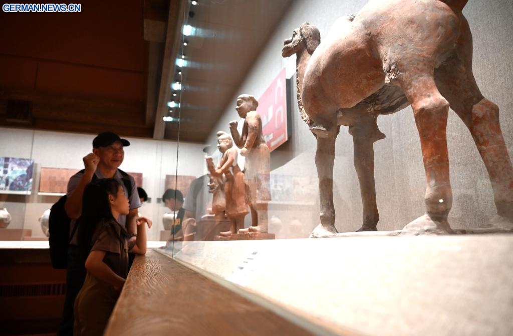 BEIJING, 10. August 2025 (Xinhuanet) -- Ein Mädchen besucht zusammen mit Verwandten das Dunhuang-Museum in Dunhuang in der nordwestchinesischen Provinz Gansu, 10. August 2025. (Foto von Zhang Xiaoliang/Xinhua)