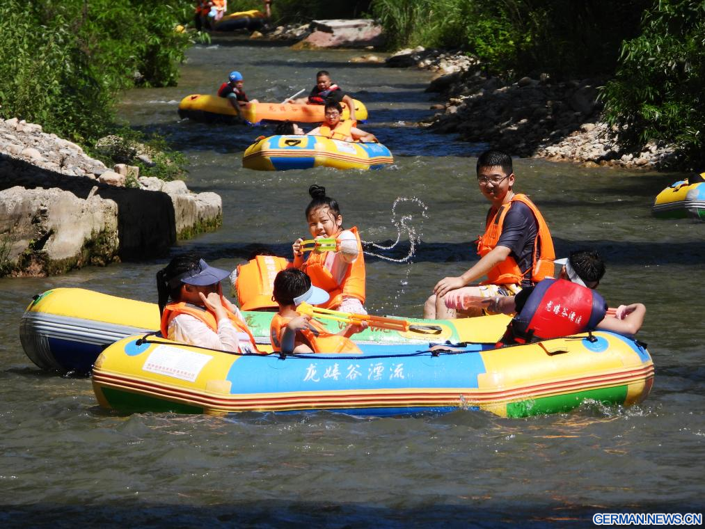 BEIJING, 13. August 2025 (Xinhuanet) -- Touristen treiben auf Booten in der Stadt Dazhou in der südwestchinesischen Provinz Sichuan, 13. August 2025. (Foto von Deng Liangkui/Xinhua)