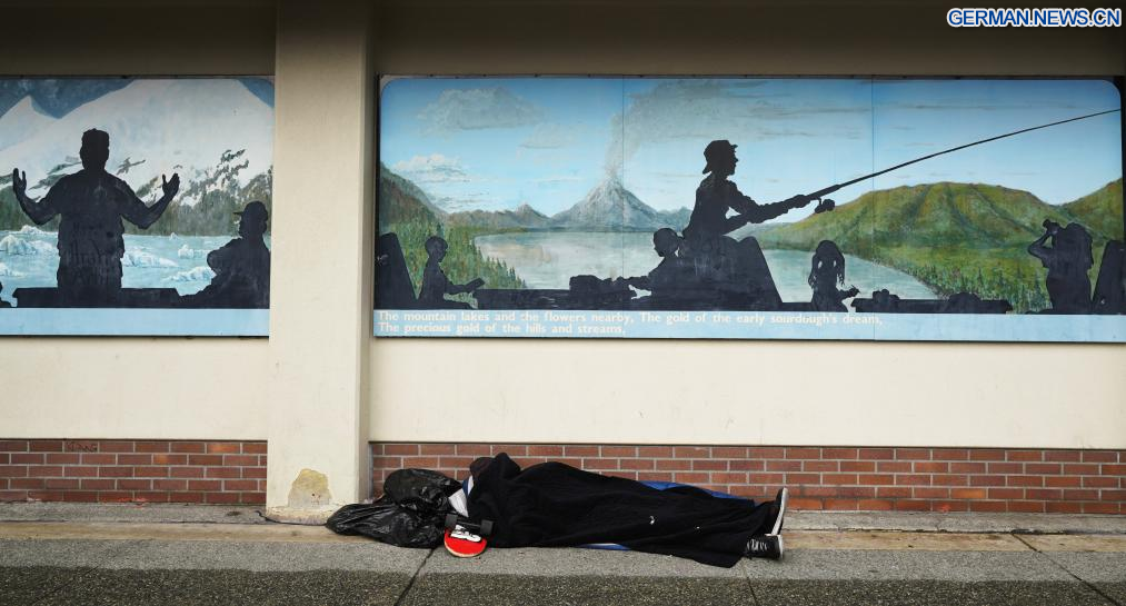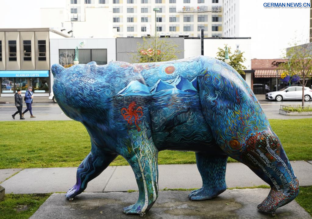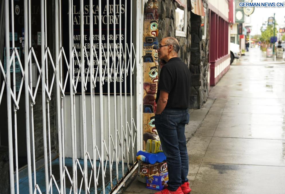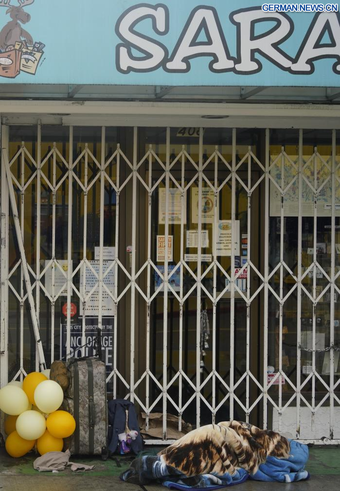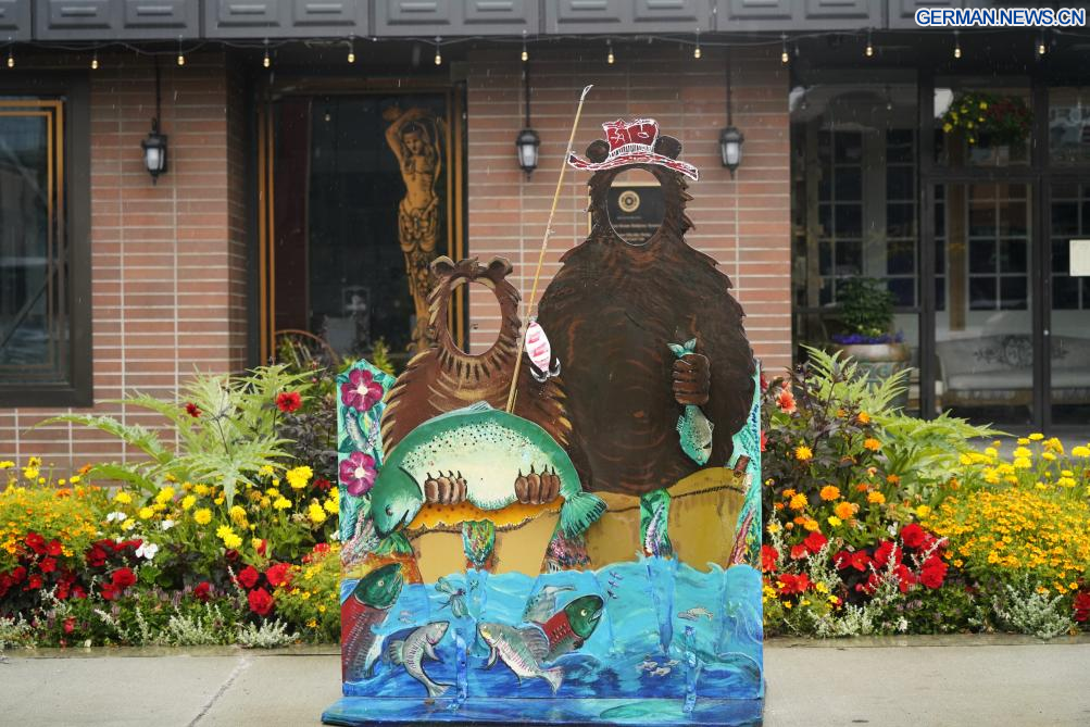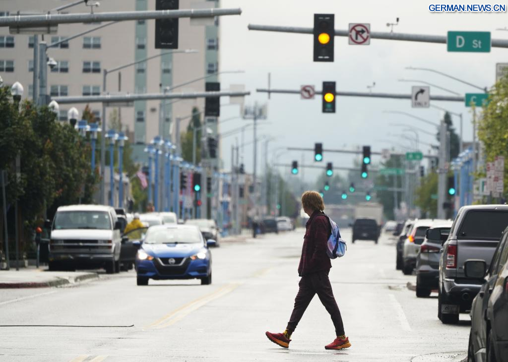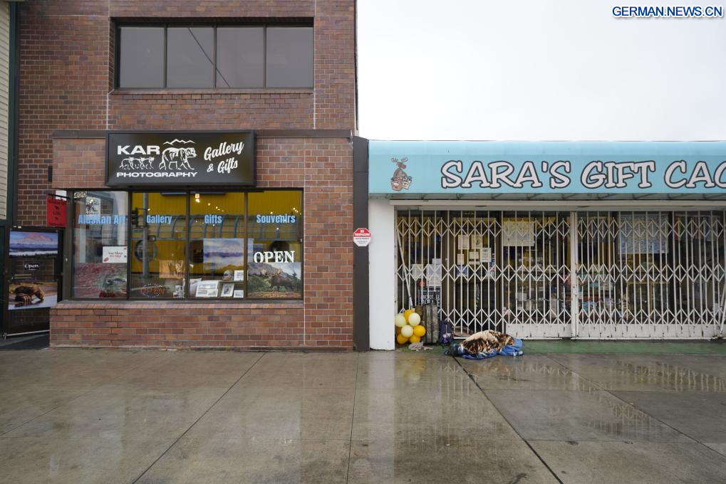 ANCHORAGE (USA), 14. August 2025 (Xinhuanet) -- Das am 14. August 2025 aufgenommene Foto zeigt Schilder in Anchorage, Alaska, den Vereinigten Staaten. Das Einzelgespräch zwischen dem russischen Präsidenten Wladimir Putin und dem US-Präsidenten Donald Trump ist für Freitag in Anchorage geplant. (Quelle: Xinhua/Wu Xiaoling)