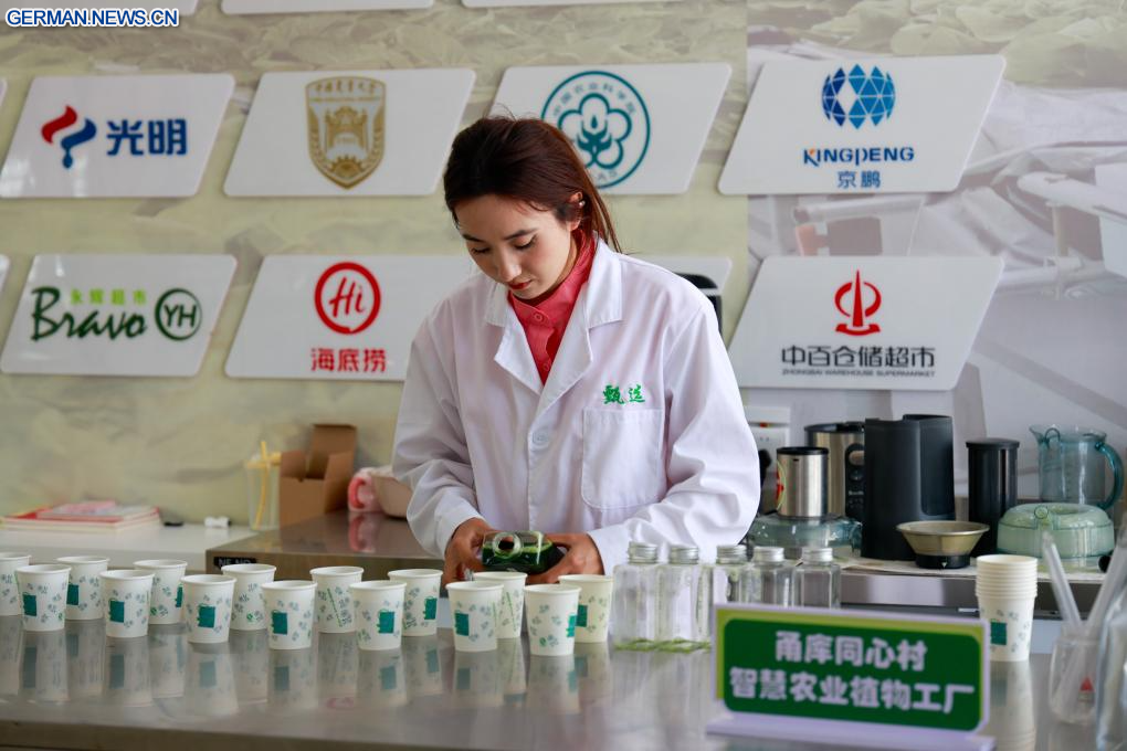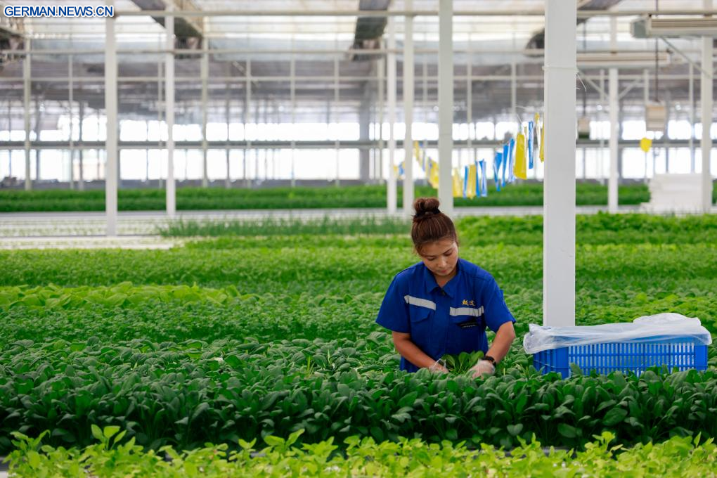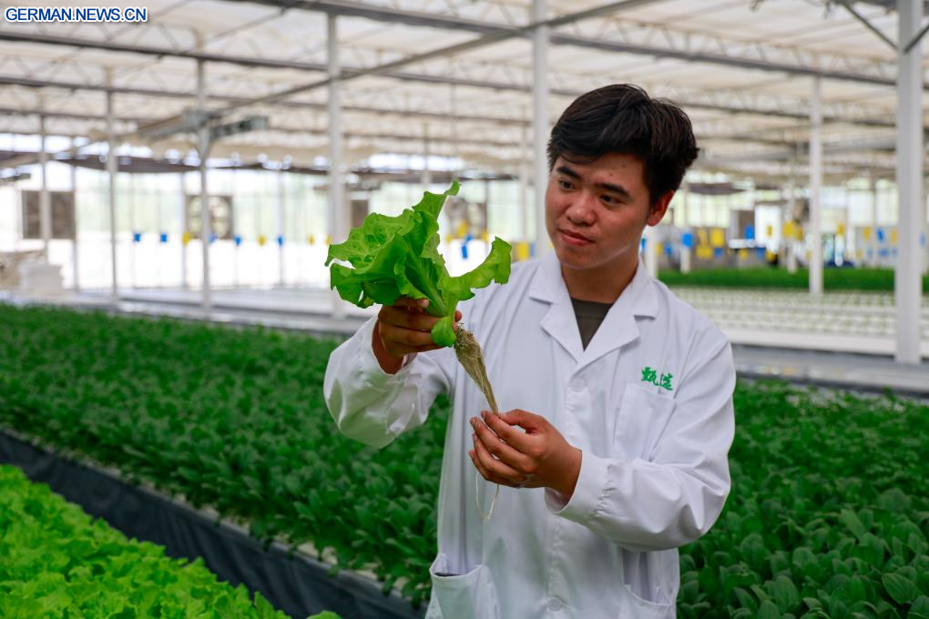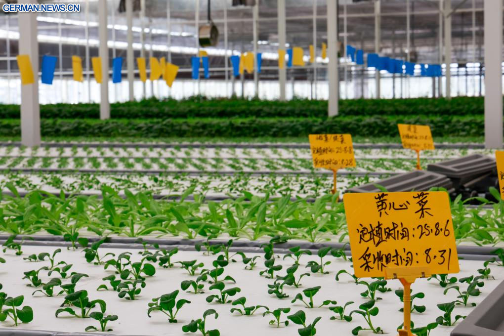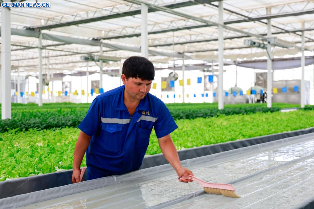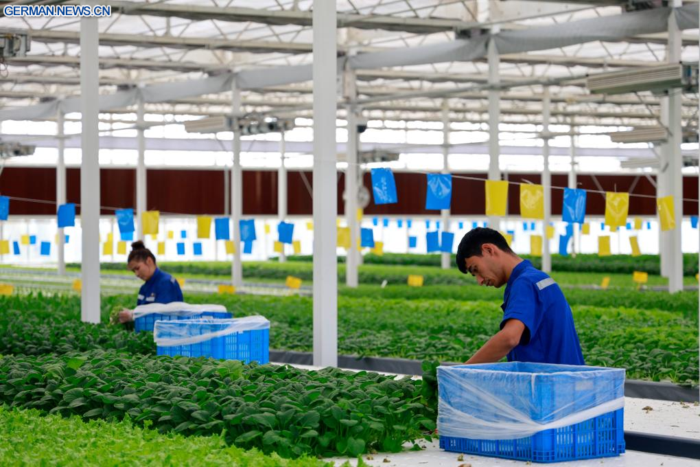 Als Meilenstein der Kooperation zwischen Ningbo und Kuqa werden im Rahmen des Projekts von Unternehmen aus Ningbo bereitgestellte Technologien und Geräte für den erdelosen Anbau eingesetzt, um hochwertige landwirtschaftliche Produkte zu erzeugen. (Quelle: Xinhua/Liu Jiaqi)