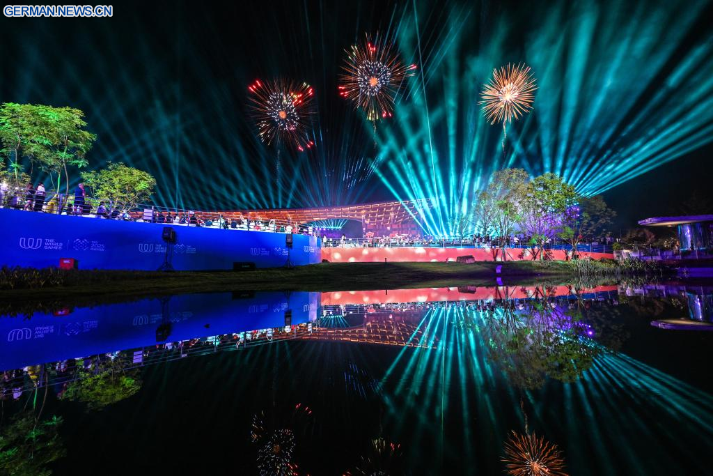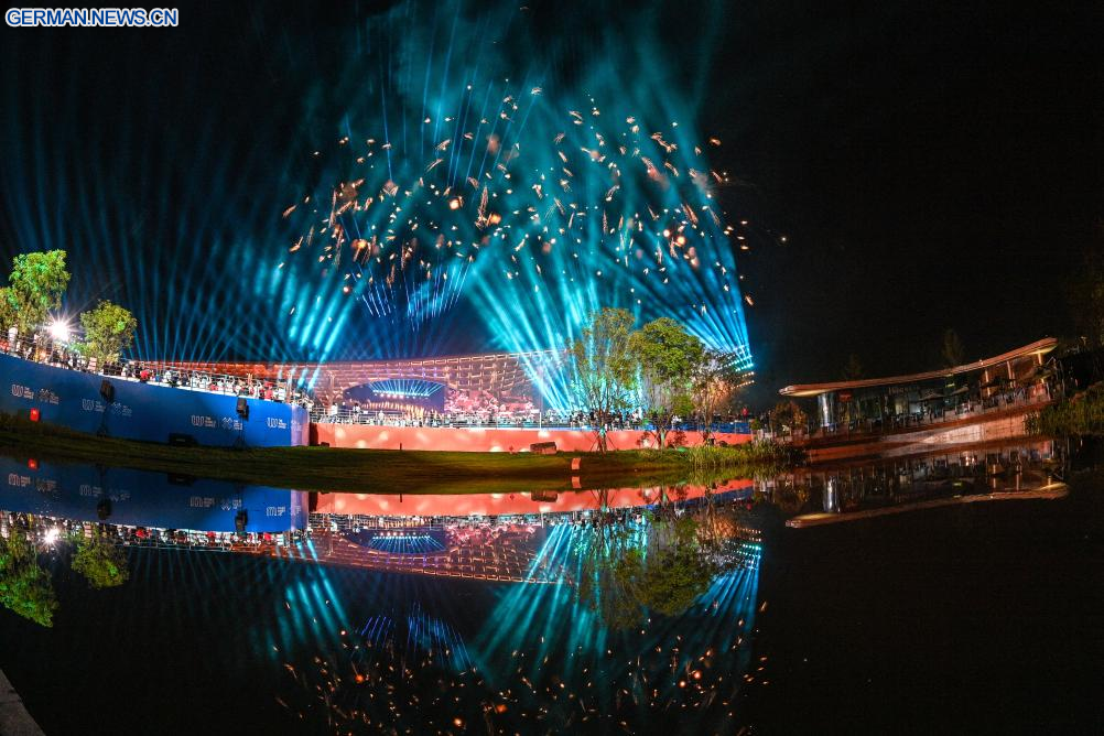 CHENGDU, 17. August 2025 (Xinhuanet) -- Das am 17. August 2025 aufgenommene Foto zeigt die Abschlusszeremonie der World Games 2025 in Chengdu in der südwestchinesischen Provinz Sichuan. (Quelle: Xinhua/Xie Jianfei)
