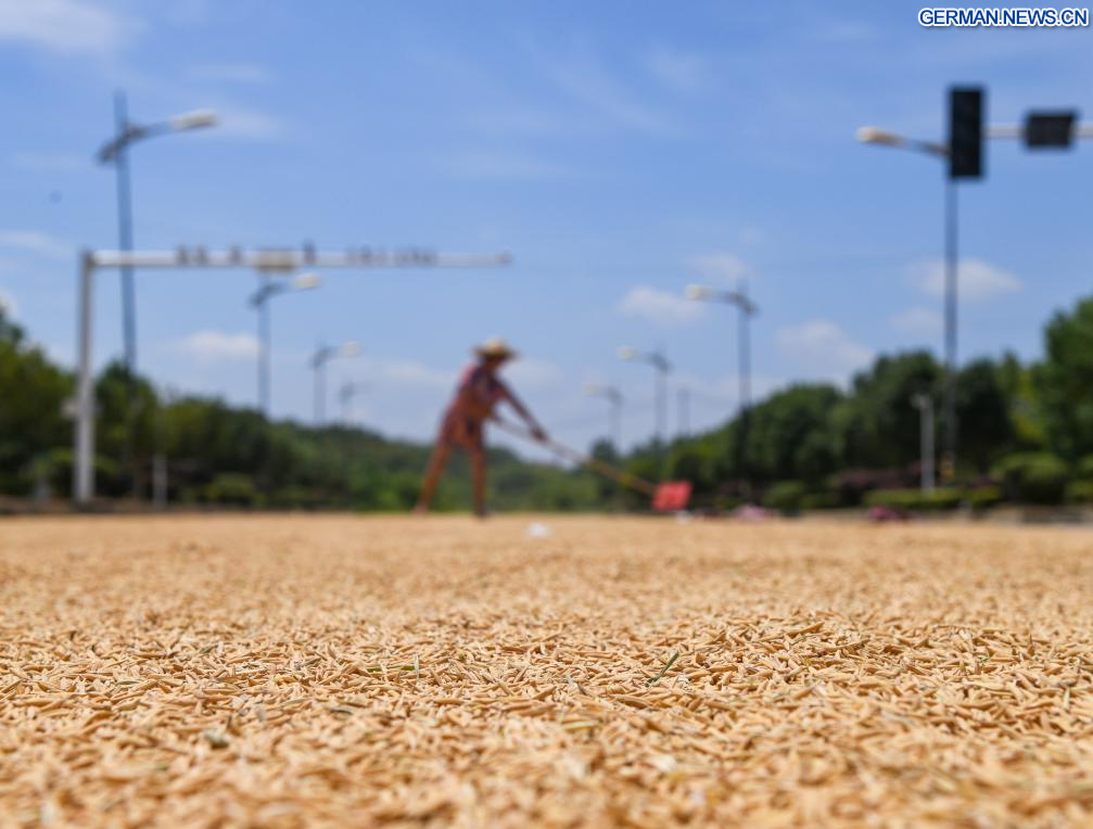 BEIJING, 23. August 2025 (Xinhuanet) -- Ein Landwirt lüftet Getreide in der Stadt Yongzhou in der zentralchinesischen Provinz Hunan, 23. August 2025. Chushu der Jahresabschnitte fällt auf den Samstag. Landwirte im ganzen Land sind mit der Arbeit auf den Feldern beschäftigt. (Foto von Jiang Keqing/Xinhua)