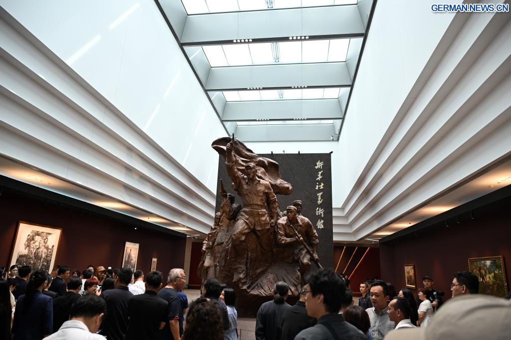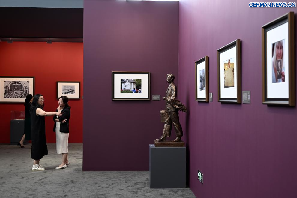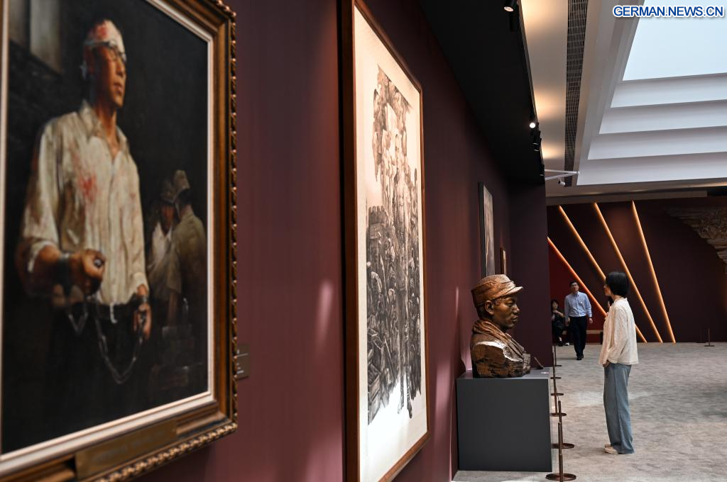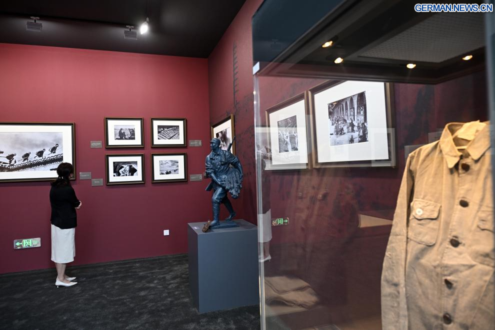 Die Ausstellung, die im National Financial Information Center in Beijing eröffnet wurde, umfasst mehr als 140 Fotografien, Relikte aus Kriegszeiten und über 10 Gemälde und Skulpturen. (Quelle: Xinhua/Jin Liangkuai)