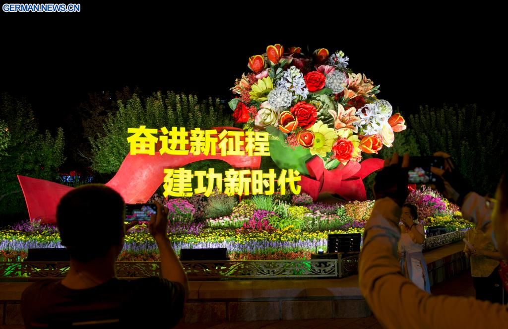 BEIJING, 26. August 2025 (Xinhuanet) -- Eine Reihe von Blumeninstallationen ist im Xidan-Gebiet in Chinas Hauptstadt Beijing abgebildet, 26. August 2025. (Quelle: Xinhua/Ju Huanzong)