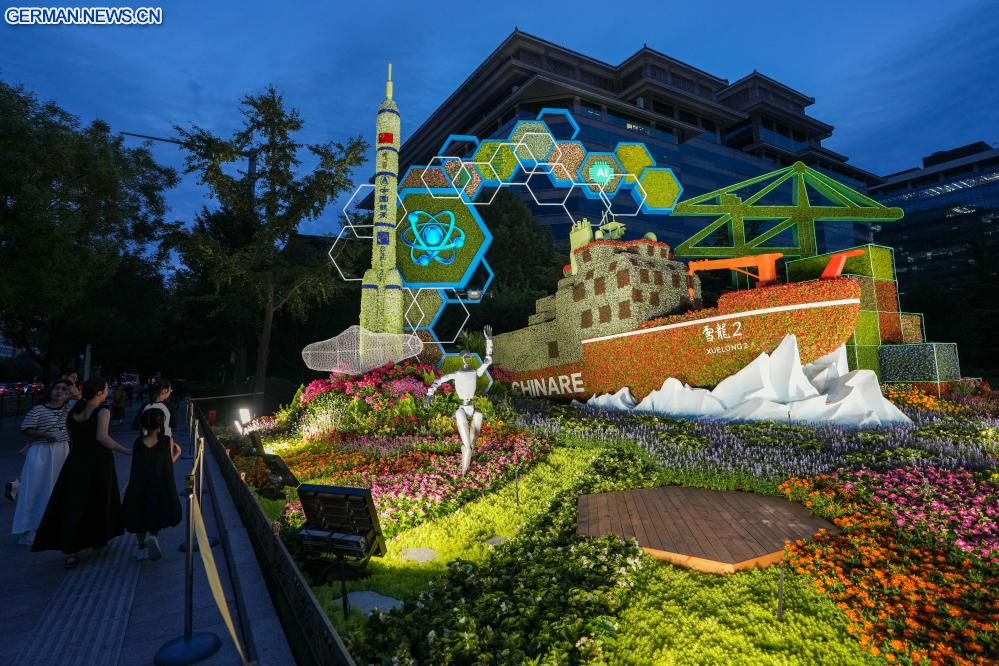 BEIJING, 26. August 2025 (Xinhuanet) -- Eine Reihe von Blumeninstallationen ist in Fuxingmen in Chinas Hauptstadt Beijing abgebildet, 26. August 2025. (Quelle: Xinhua/Xie Han)