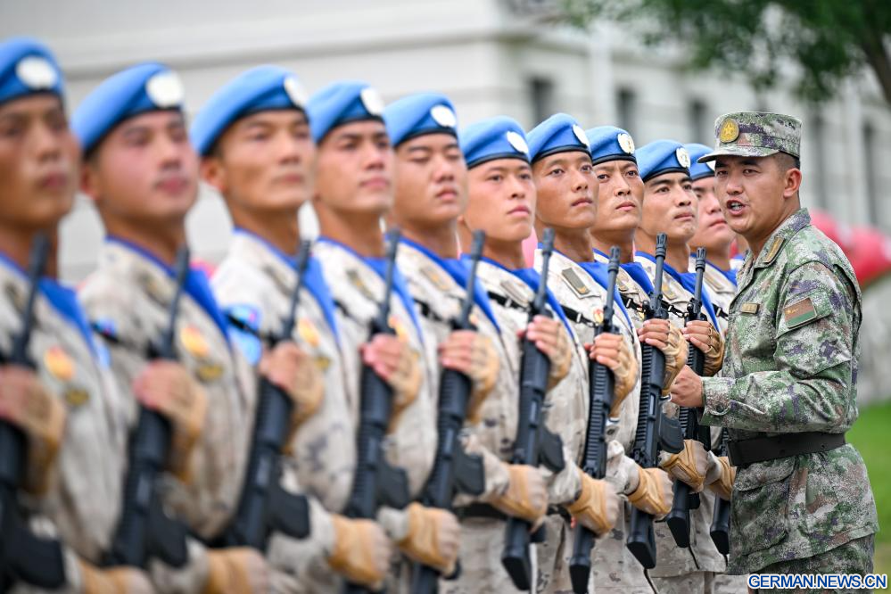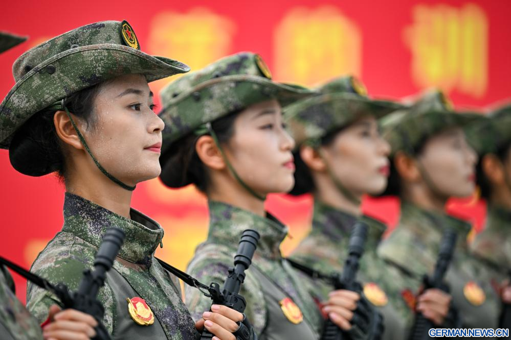 BEIJING, 20. August 2025 (Xinhuanet) -- Teilnehmer nehmen an einem Training für die bevorstehende Militärparade zum Tag des Sieges in Chinas Hauptstadt Beijing teil, 12. August 2025. (Quelle: Xinhua/Zhang Cheng)
