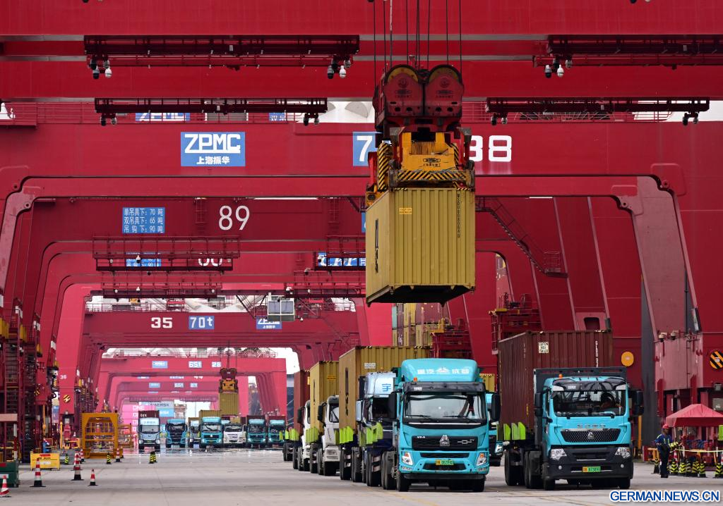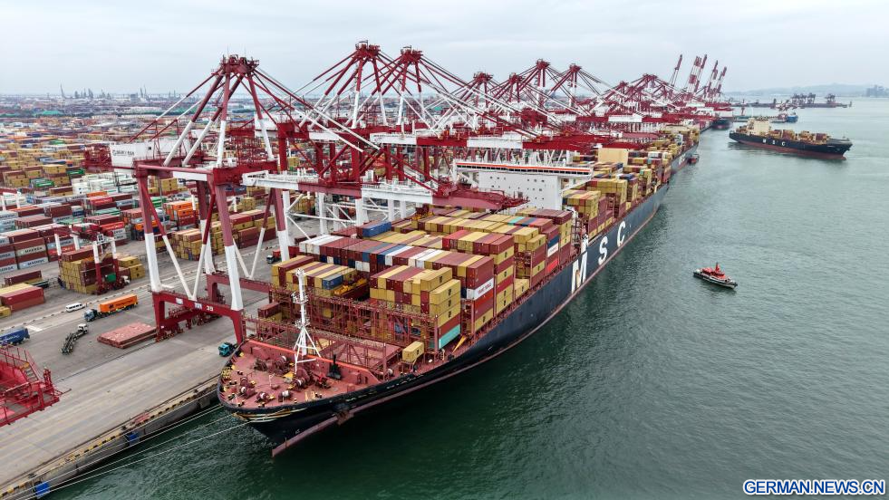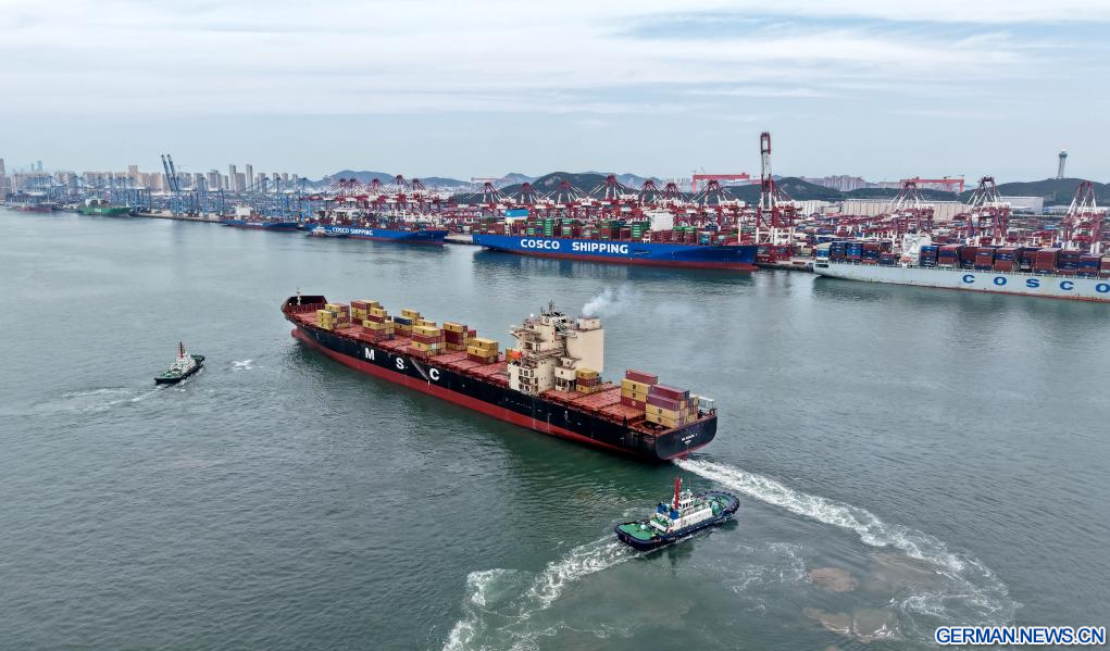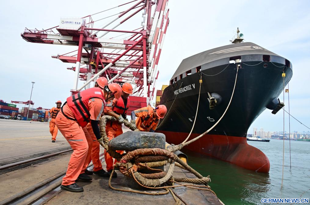 Unter anderem verzeichnete das Volumen des Containertransports im Hafen für die Zentralasien-Route, die Indien- und Pakistan-Route sowie eine intermodale See-Schiene-Route, die Japan, Südkorea und zentralasiatische Länder verbindet, ein Wachstum gegenüber dem Vorjahr. Bislang ist der Hafen von Qingdao mit 42 Schifffahrtsrouten zu den SOZ-Ländern verbunden und erreicht 30 Häfen in diesen Ländern. (Quelle: Xinhua/Li Ziheng)