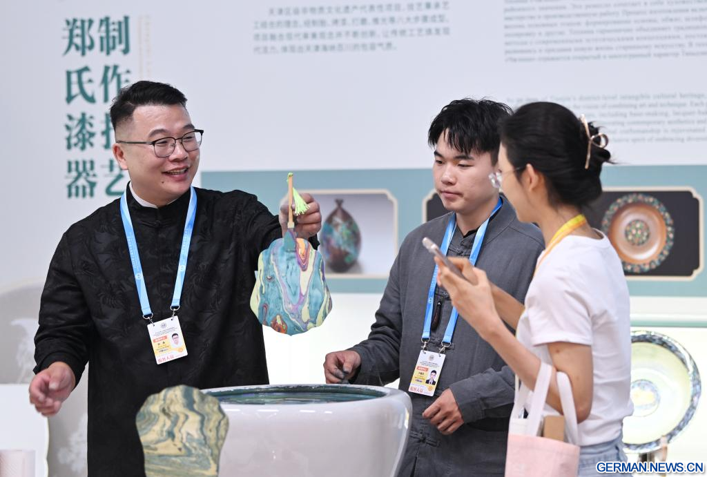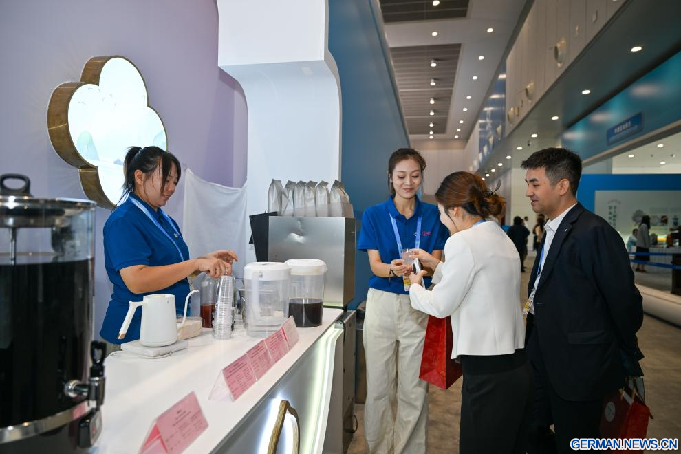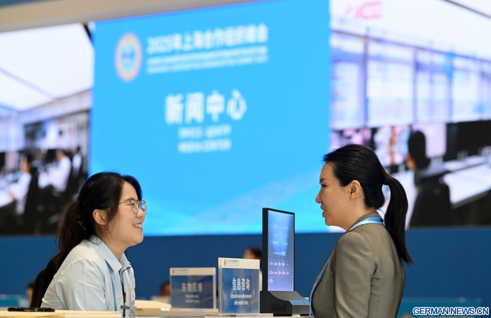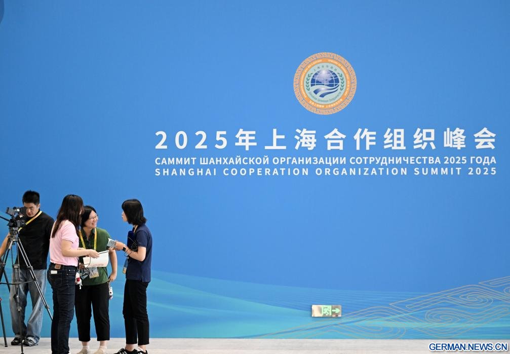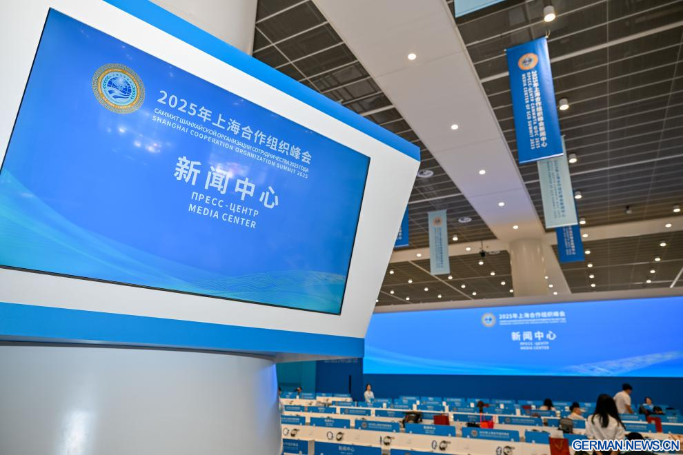 TIANJIN, 28. August 2025 (Xinhuanet) -- Das Foto vom 28. August 2025 zeigt einen Blick auf das Medienzentrum für den bevorstehenden Gipfel 2025 der Shanghaier Organisation für Zusammenarbeit (SOZ) im nordchinesischen Tianjin. Das Medienzentrum wurde hier am Donnerstag eröffnet. (Quelle: Xinhua/Sun Fanyue)