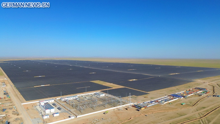 BEIJNG, 29. August 2025 (Xinhua) -- Die Luftaufnahme einer Drohne zeigt das von einem chinesischen Unternehmen finanzierte und gebaute 1-Gigawatt-Photovoltaikprojekt in der Region Kashkadarya in Usbekistan, 20. Juni 2024. (Xinhua)