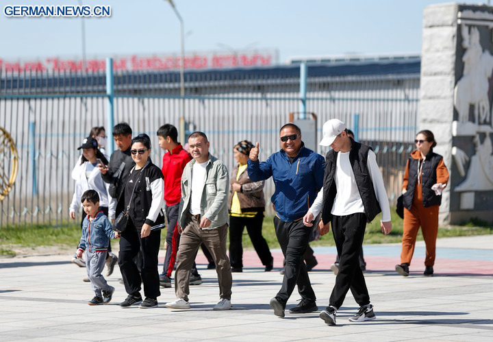 BEIJNG, 29. August 2025 (Xinhua) -- Reisende aus Kasachstan betreten das chinesisch-kasachische Internationale Grenzkooperationszentrum in Horgos im Uigurischen Autonomen Gebiet Xinjiang im Nordwesten Chinas, 19. April 2024. (Xinhua/Chen Shuo)