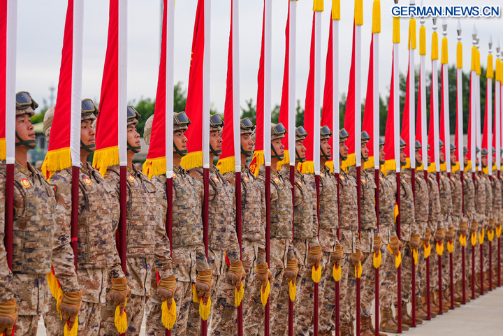 BEIJING, 30. August 2025 (Xinhua) -- Teilnehmer trainieren für die bevorstehende Militärparade zum V-Day in der chinesischen Hauptstadt Beijing, 14. August 2025. Die Teilnehmer sind mit den Vorbereitungen für die bevorstehende Militärparade zum V-Day beschäftigt, die am 3. September anlässlich des 80. Jahrestags des Sieges im chinesischen Widerstandskrieg gegen die japanische Aggression und im weltweiten antifaschistischen Krieg auf dem Tian'anmen-Platz stattfinden wird. (Foto von Wang Huanbin/Xinhua)
