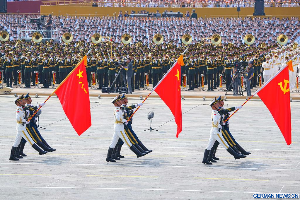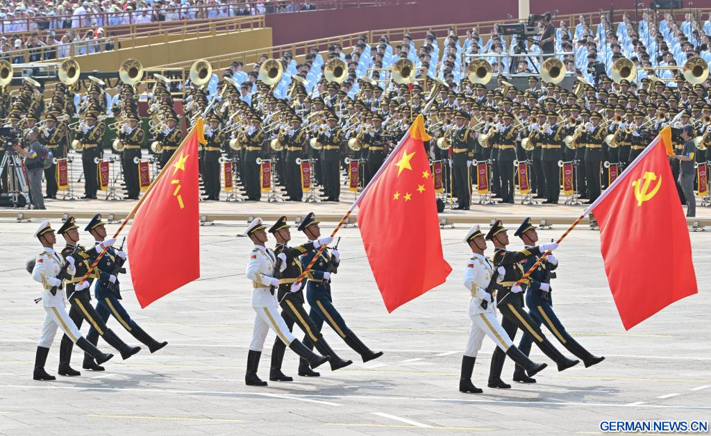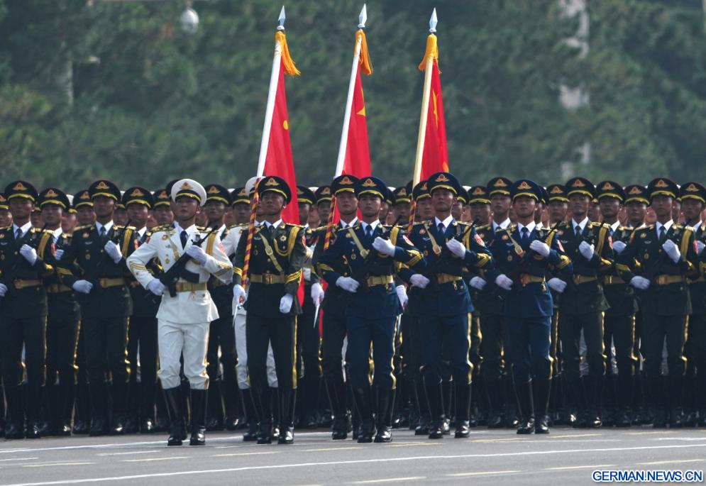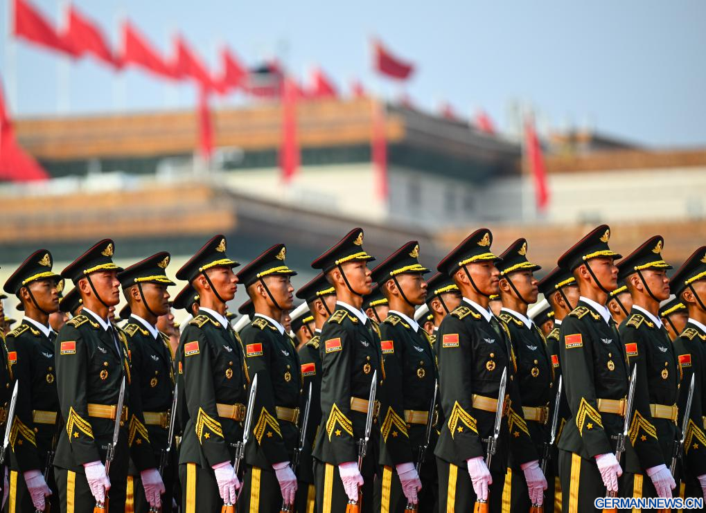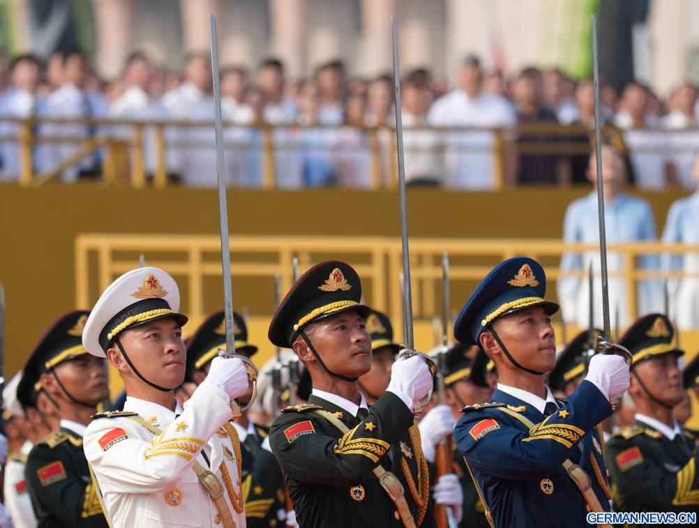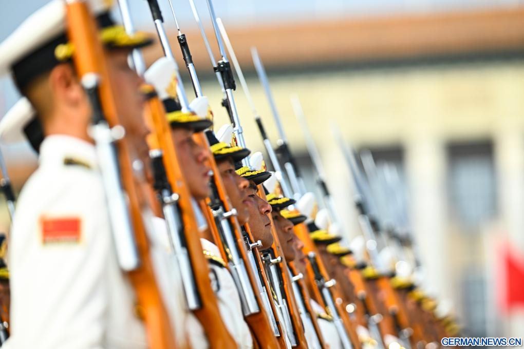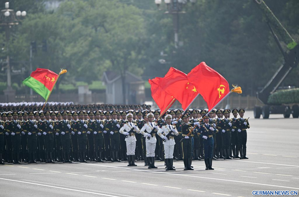 BEIJING, 3. September 2025 (Xinhuanet) -- Ehrengarde steht in Formation während einer großen Versammlung zum Gedenken an den 80. Jahrestag des Sieges im Widerstandskrieg des chinesischen Volkes gegen die japanische Aggression und im weltweiten antifaschistischen Krieg in der chinesischen Hauptstadt Beijing, 3. September 2025. (Quelle: Xinhua/Wan Xiang)